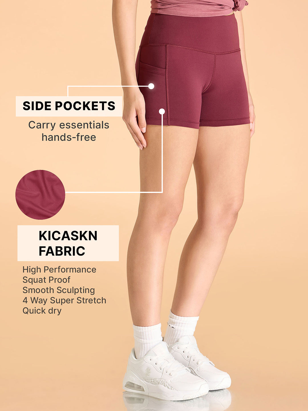 The Booty Shorts That Do It All Meet the High Waisted Booty Shorts, your all-in-one essential for workouts, lounging, and everything in between. Designed in our signature KICASKN™ fabric, these seamless shorts for women are lightweight, breathable, and quick-drying, giving you distraction-free comfort no matter how you move. With a sculpting high-rise fit and stay-put waistband, they’re your ultimate blend of performance, comfort, and style. Whether you’re hitting the gym, running errands, or just unwinding at home, these shorts deliver all-day confidence and effortless cool. Why You’ll Love It: - Stay-Put Design: High-waisted silhouette with an anti-slip waistband that stays in place through every rep, stretch, or stride. - Essentials on the Go: Functional side pockets to carry your phone, keys, or cards because convenience is non-negotiable. - All-Day Comfort: 4-way stretch fabric that hugs and moves with your body for that snug-yet-stretchy fit. - Flawless Fit: 10" inseam and wear-tested by our in-house team to ensure the perfect cut, ideal as cycle shorts or biker shorts for women. - Effortless Styling: Pairs effortlessly with our Graphic Tees or Sports Bras for a look that’s both gym-ready and street-approved. Pair It With: Style it with QuickDry Stride Tops & Tanks or CourtCulture cotton tees - your perfect breathable workout duo.