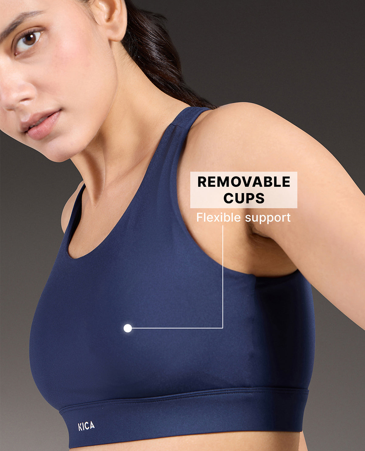 - Removable cups so you wear the sports bra according to your preference.