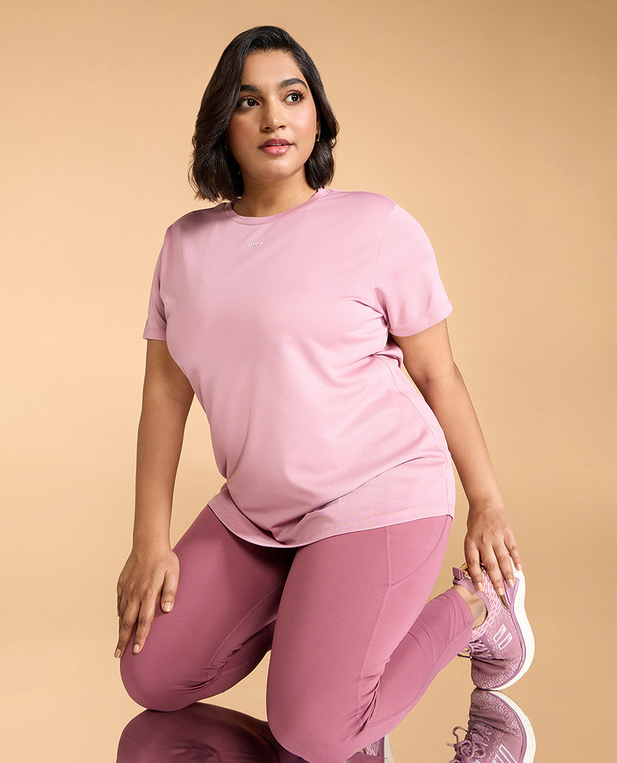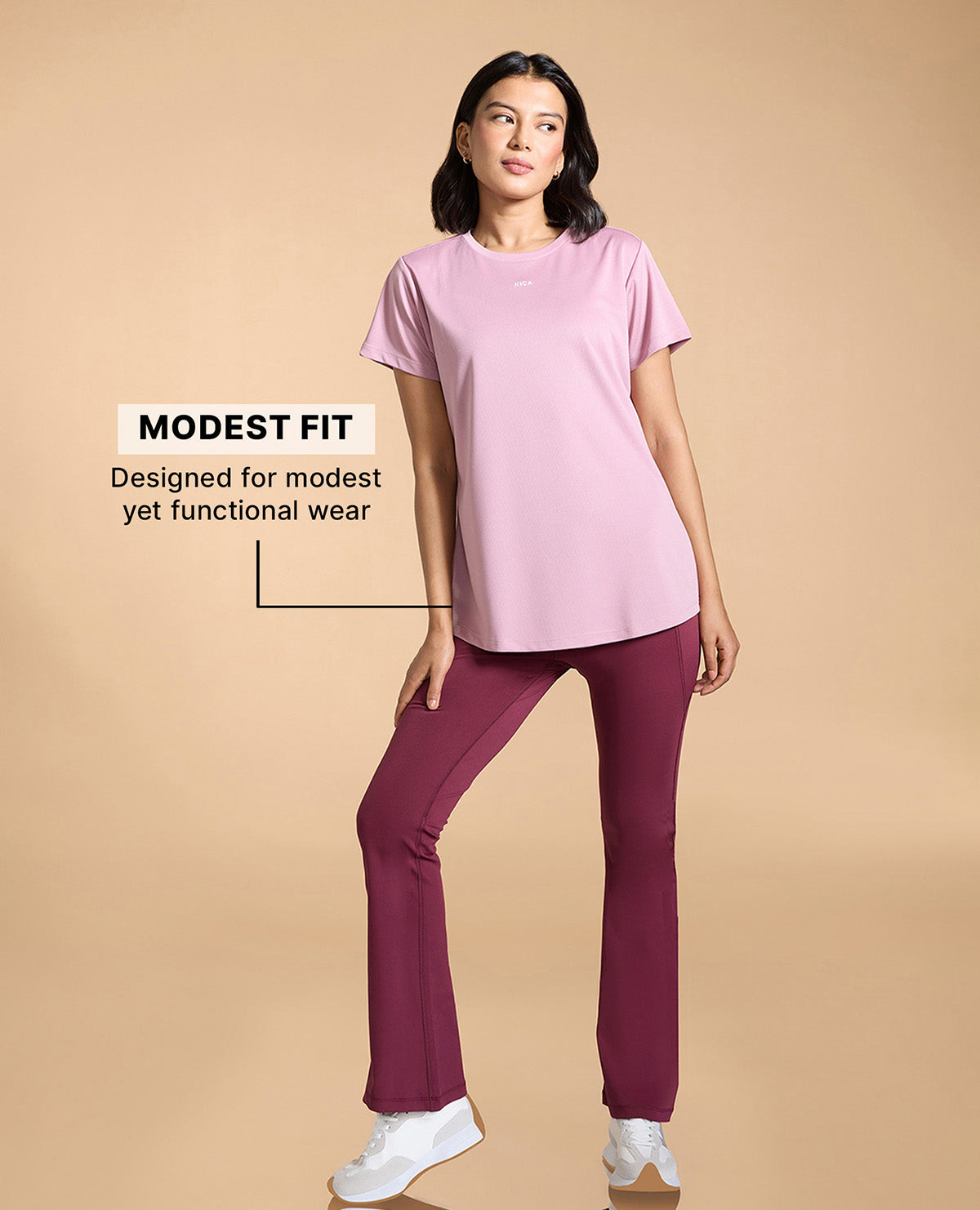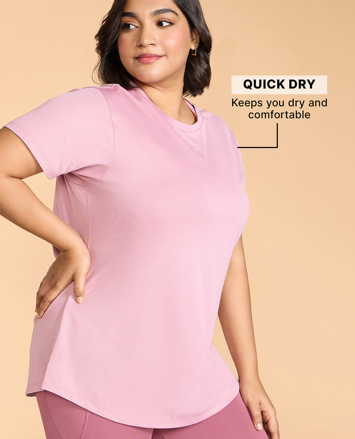 Kica Quick Dry Active T-Shirt with Curved Hem and Flattering Hip-Length Fit Pink
