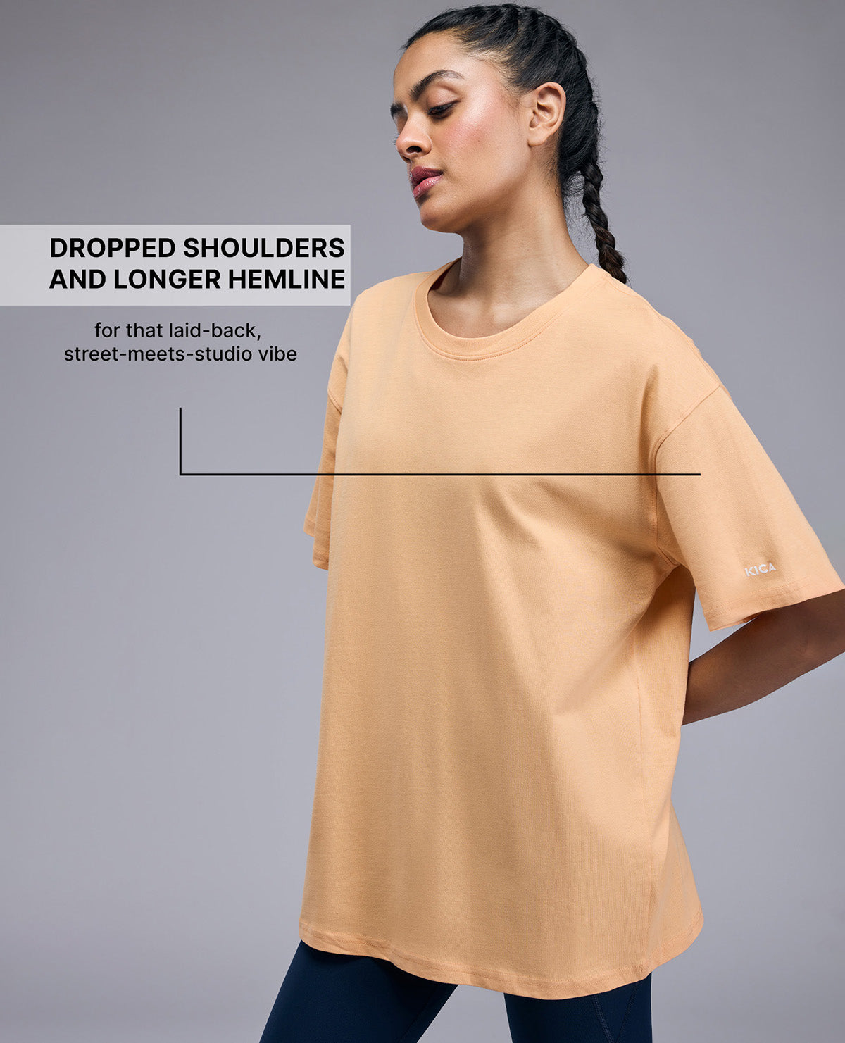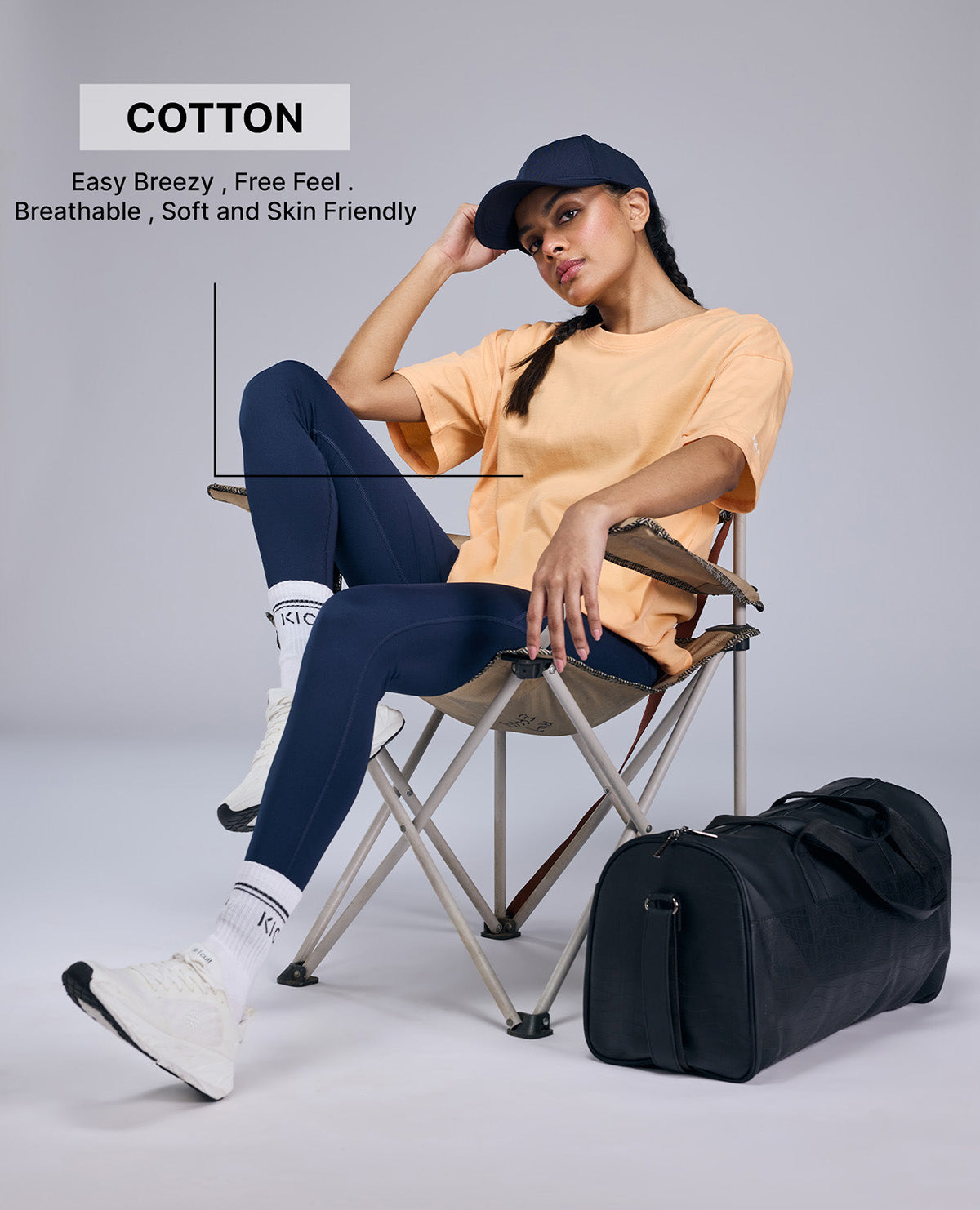 The Cotton Oversized tee is your everyday staple for movement and ease. Designed in 100% premium cotton with an extra-soft finish, this oversized t-shirt for women is breathable, lightweight, and designed for all day comfort. Whether you’re lounging, layering, or out on the move, it’s the effortless throw-on you’ll reach for again and again.