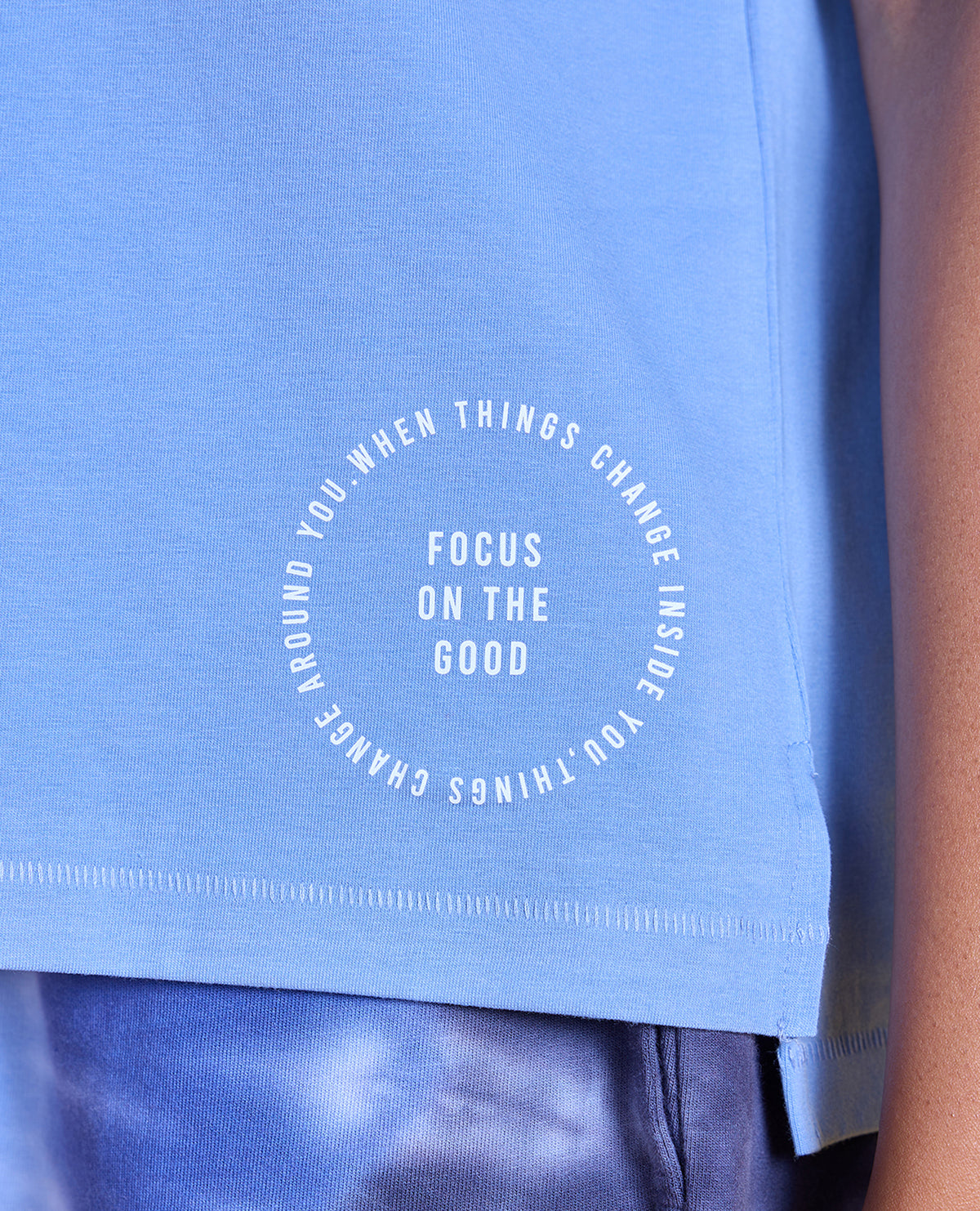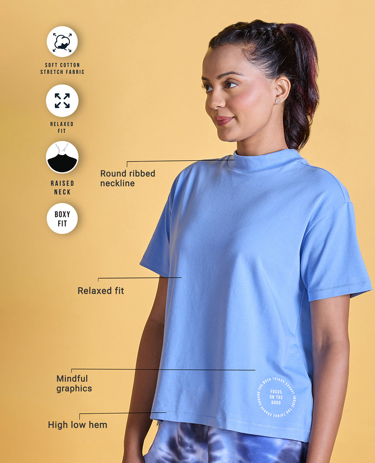 Crafted with raised neckline and rib detailing, high low hem with mindful graphic, it's a wardrobe essential you can't miss.