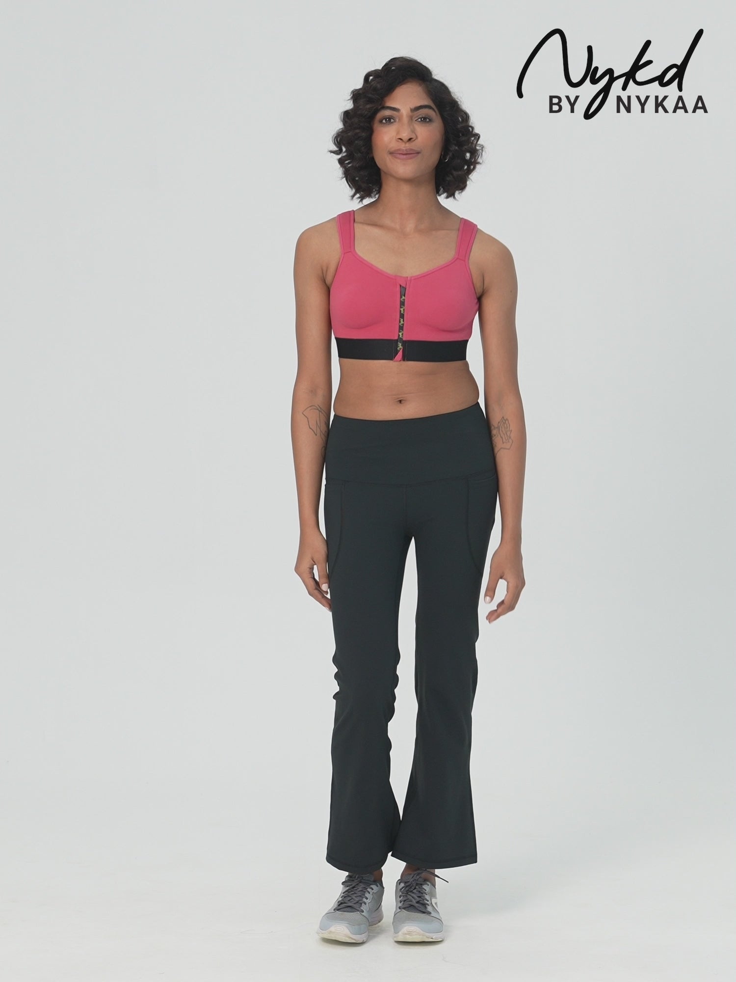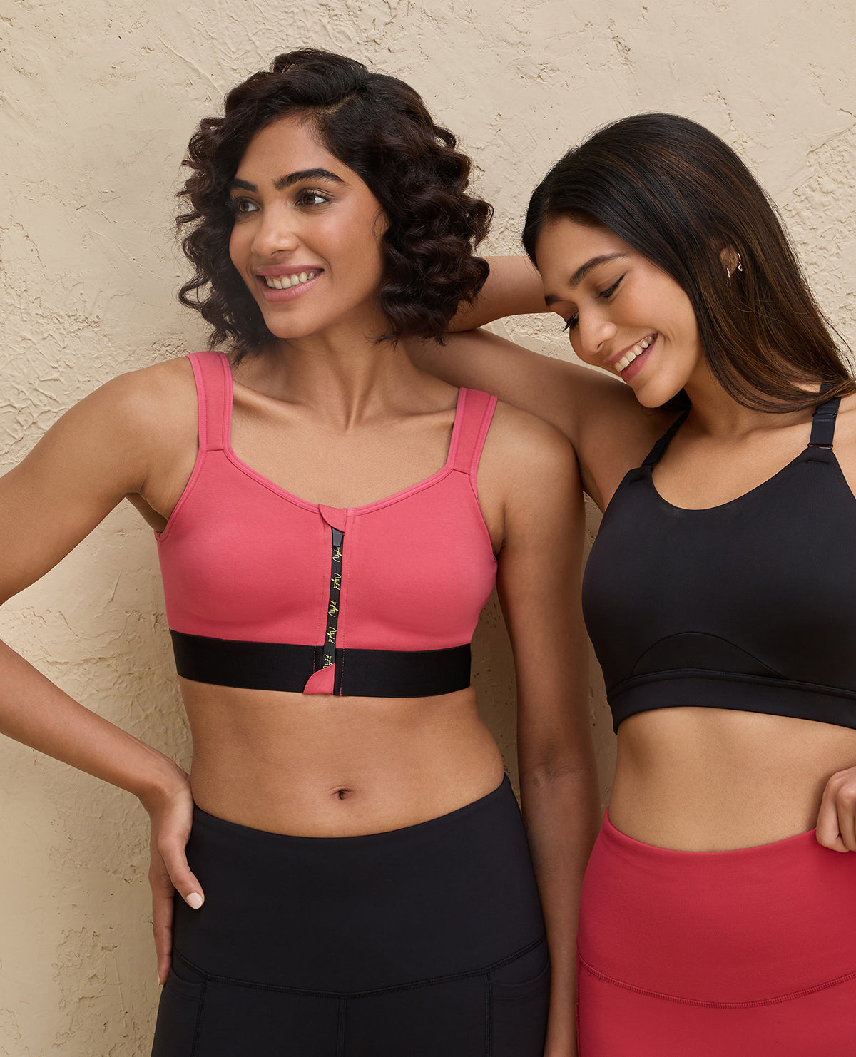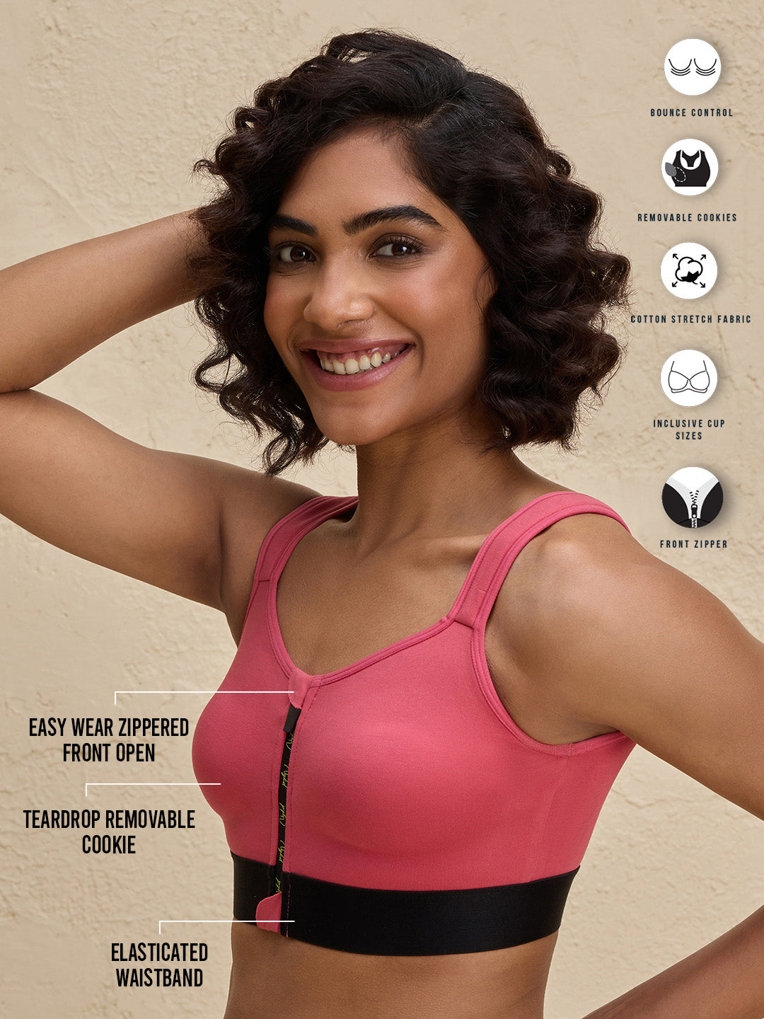 Nykd By Nykaa Front Zip Cotton High Impact No Slouch Sports Bra-NYK907-Coral