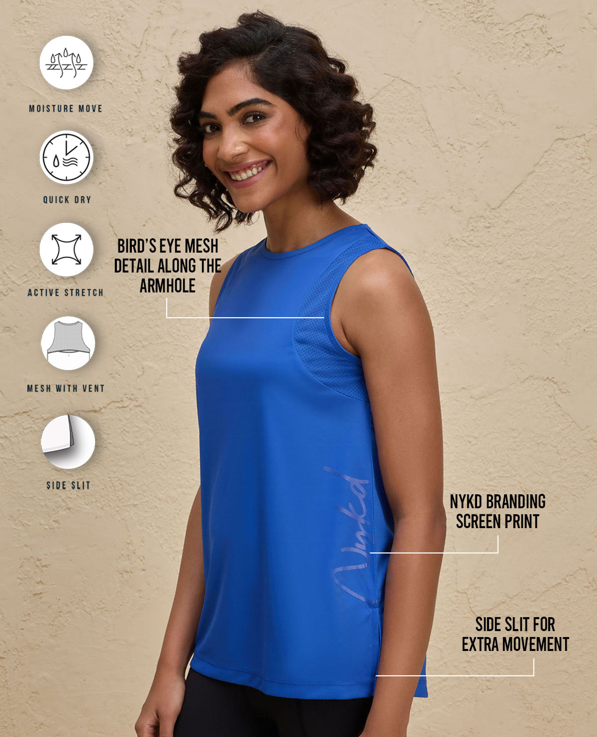 | Nykd By Nykaa Quick Dry Stylised Tank Top Longline -NYK034-Bright Blue