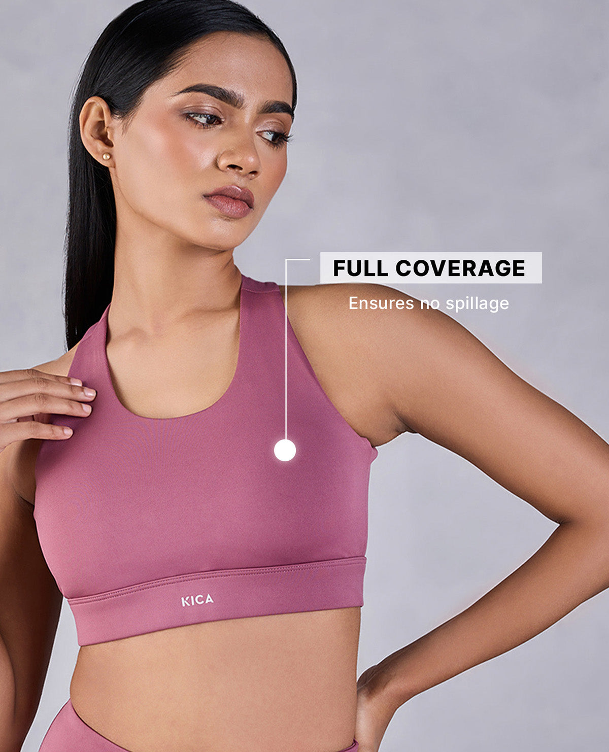 A: Kica sports bras are designed with features to ensure maximum support and comfort. Look for adjustable straps that allow you to customize the fit and find the right level of support for your body. Wide, padded shoulder straps help distribute weight and reduce pressure on your shoulders. Our sports bras also feature a supportive underband and encapsulated cups for excellent support and shape. Additionally, moisture-wicking and breathable fabrics are incorporated to keep you cool and dry during your workouts.