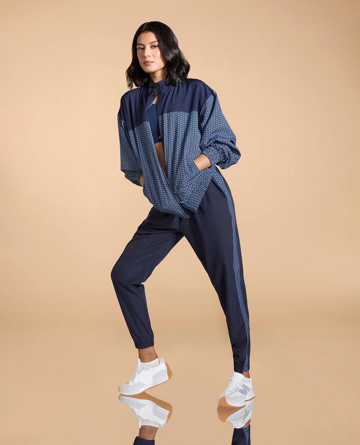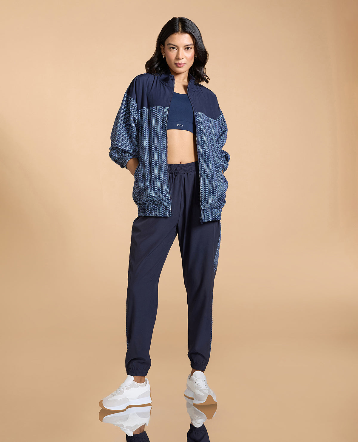 An Oversized Bomber Jacket is the only winter wardrobe essential you need. With an oversized fit, color-blocked panels, elasticated cuffs, and bottoms, this bomber is a charmer. The unique Kica print is gonna make you look runway-ready. Pair with our Printed Lightweight Tracks and make heads turn cause "Chica, you look fabulous!"
