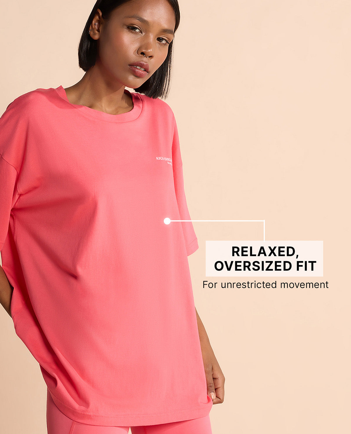 "Meet your new off-duty essential: the Cotton Oversized T-Shirt. Designed in 100% premium cotton and finished for an extra-soft feel, this oversized t-shirt for women is breathable, lightweight, and made for all-day comfort. Whether you’re lounging, layering, or lifting, it’s the easy throw-on you’ll reach for again and again. Why you’ll love it: * Relaxed oversized fit that keeps you airy and unrestricted * Hip-covering length for flattering drape and extra coverage * Soft cotton fabric that feels as good as it looks * Round neck and graphic print for effortless style * Works with everything: leggings, jeans, or shorts Made from 100% Cotton with a luxe gold finish treatment, the Cotton Oversized T-Shirt is your versatile everyday essential. From yoga sessions to coffee runs to weekend lounging, this oversized tee for women moves with you everywhere."