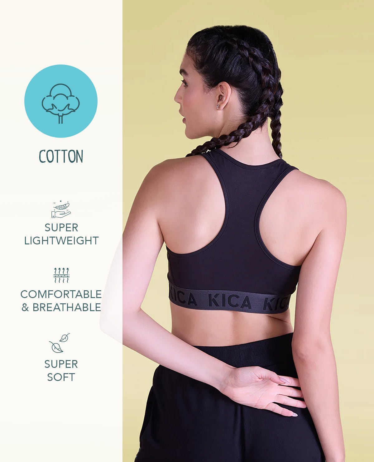 A: Yes, we do! Kica offers cotton sports bras for those seeking a soft and natural feel against their skin during low-impact activities. Our cotton sports bras provide comfortable support and breathability, making them an excellent option for activities like yoga or casual wear.