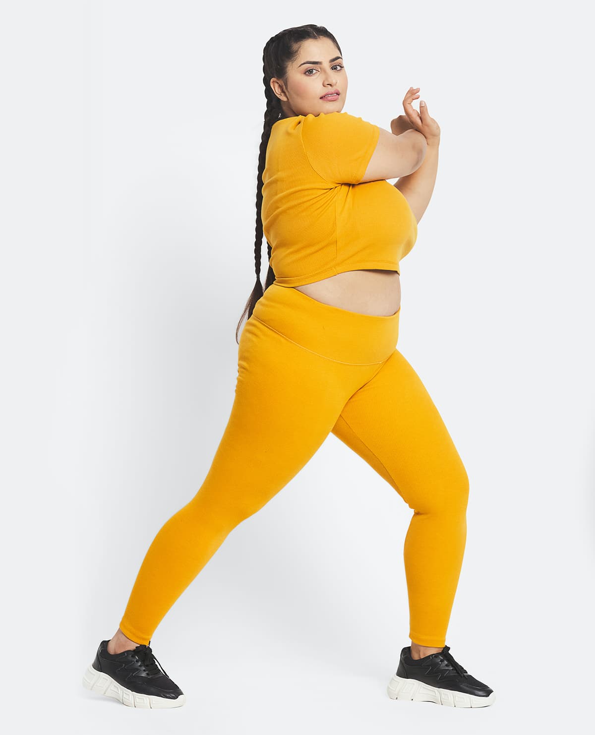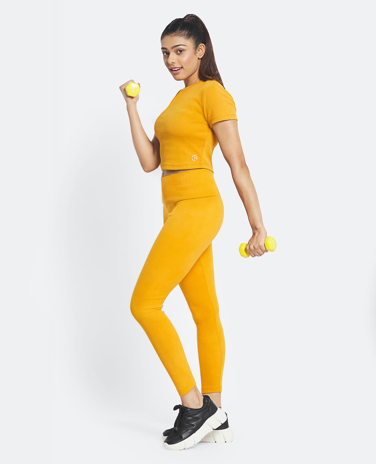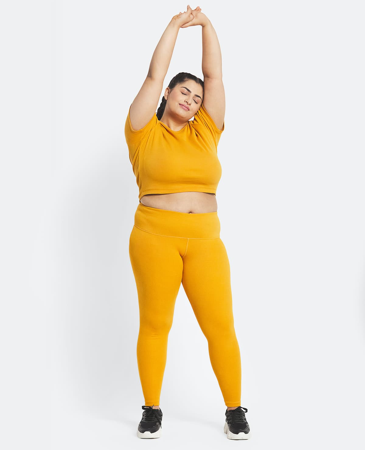 Set: Cotton Ribbed Comfy Top & Cotton Ribbed High Waisted Leggings - Yellow