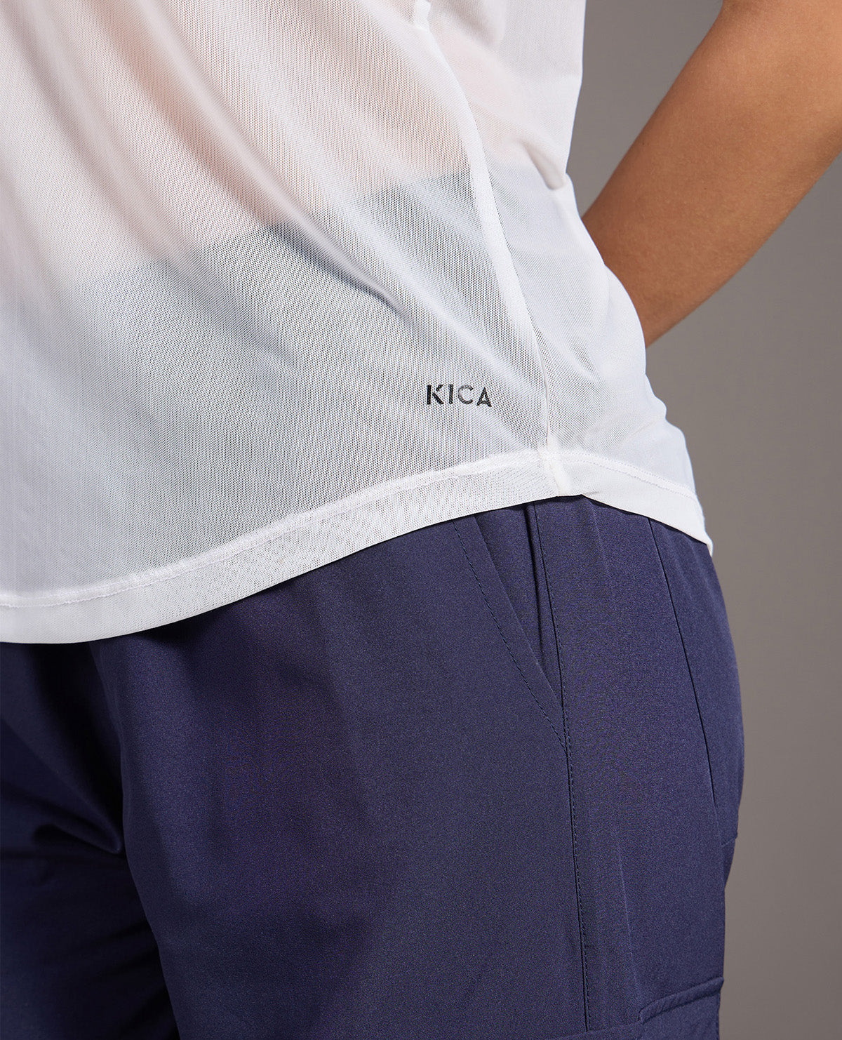 Crafted from lightweight nylon mesh, this sports top for women delivers style, performance, and functionality.