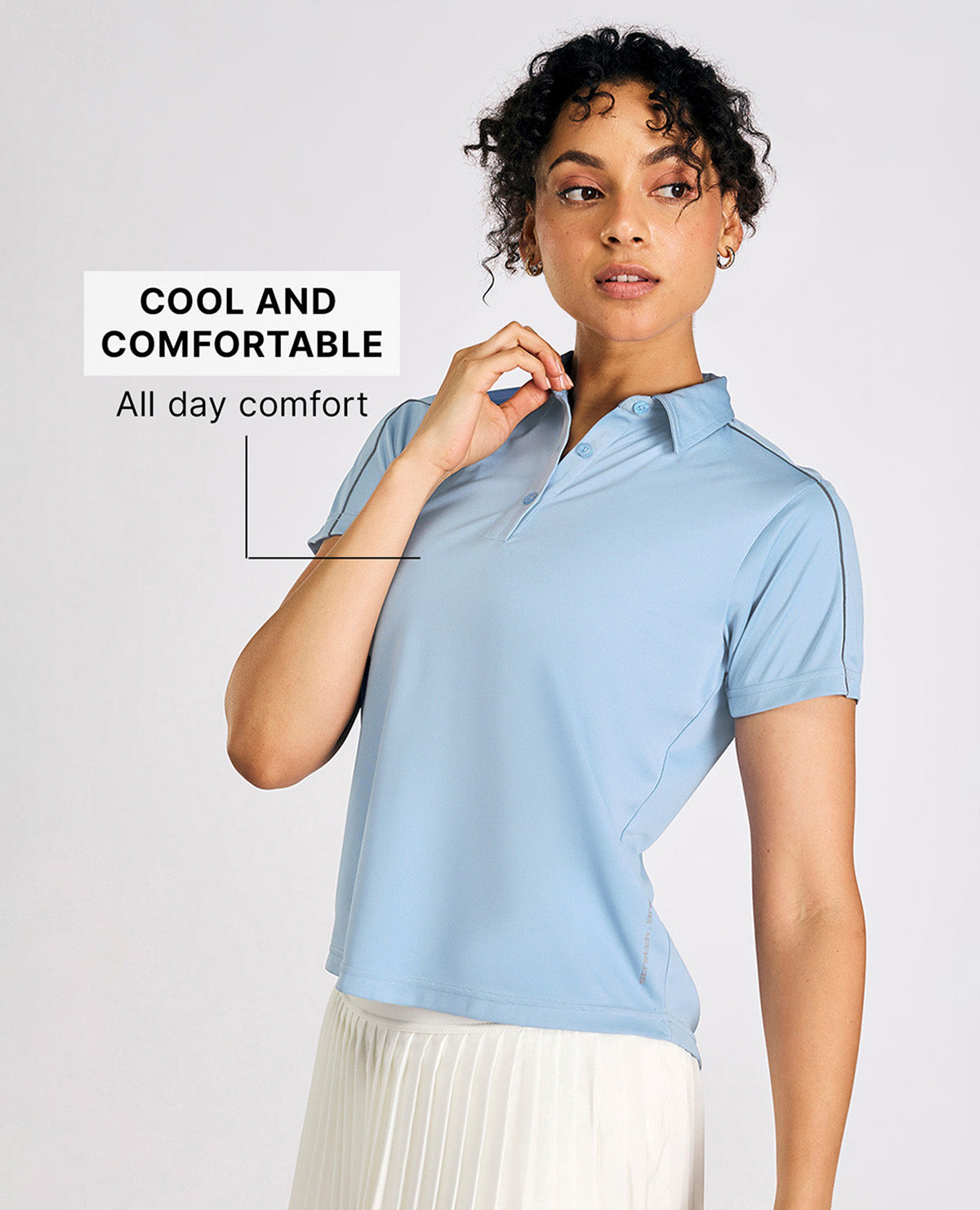 Crafted from soft, breathable fabric, it offers all-day comfort while its sweat-wicking and quick-dry properties keep you cool and fresh, no matter the activity. A classic button placket and collar are finished with reflective tape, giving you an active-inspired look. This versatile top is perfect for workouts, your daily commute, or effortless casual layering.