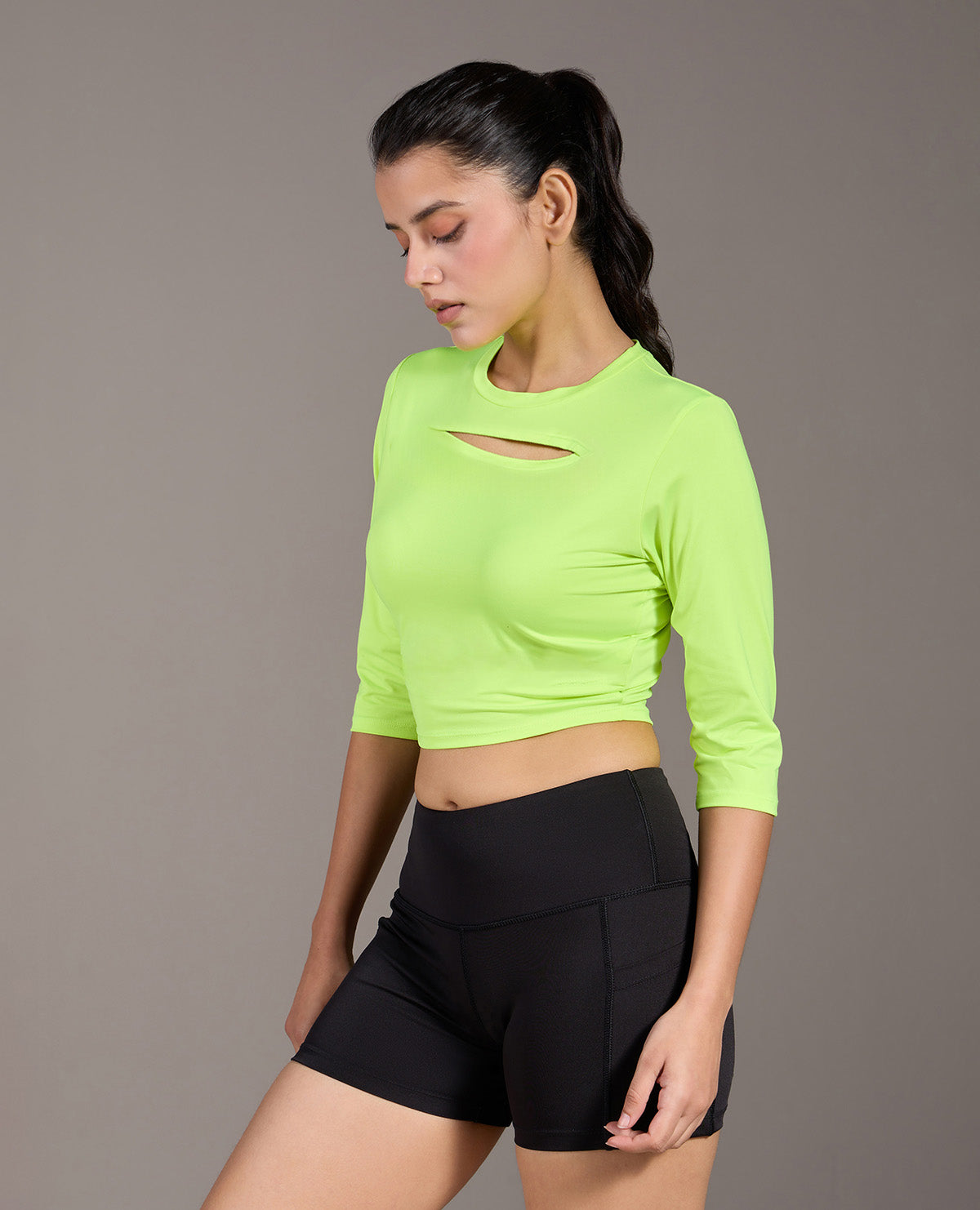 Slip into soft tees and comfy fits. Designed in our smooth Feather Feel fabric, this fashionable Cropped Top feels like you're wearing absolutely nothing. It's super lightweight, breathable, and durable. The small slit above the neckline adds the perfect baddie-look to your OOTD.