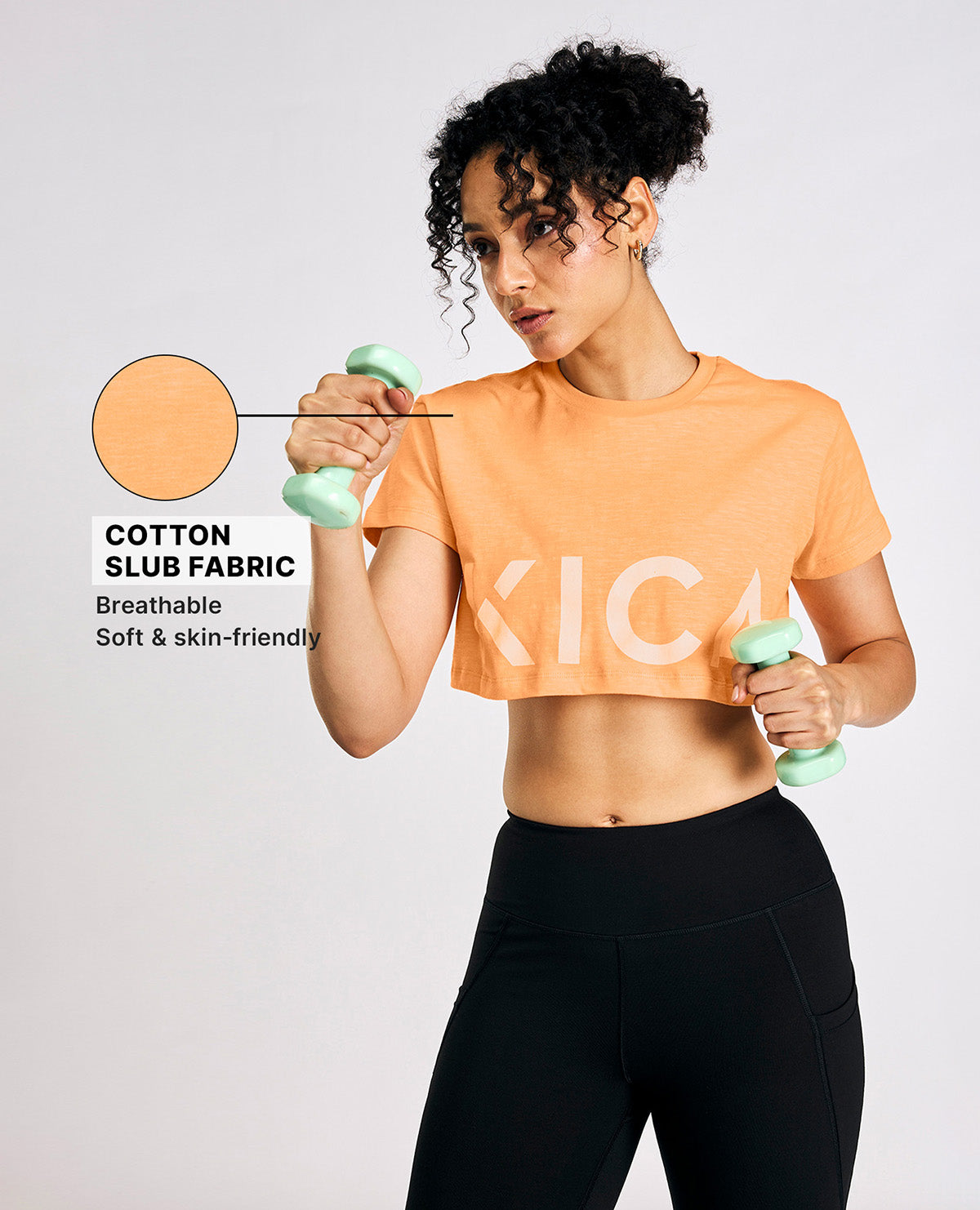This Relaxed Fit Cotton Crop Top for Women brings comfort and style together effortlessly. Made with lightweight, breathable cotton slub, it features a cropped cut, dropped shoulders, and a boxy fit that moves with you. The bold logo hem adds a standout touch, making it great for gym sessions, errands, or weekend looks.