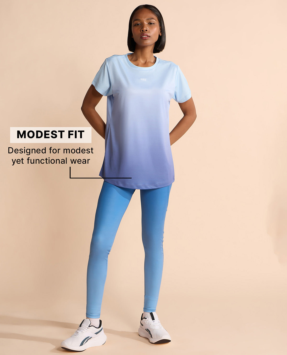 For all the chicas who prefer longer lengths in active tops, we have the perfect product for you! Our basic top covers your hips and front with a curved hem. It has a relaxed longline silhouette that provides modest coverage for everyday wear. Crafted in a sweat-friendly, airy, and lightweight fabric, this modest-length basic top is suitable for high-intensity workouts like gym & training, running, and dancing.