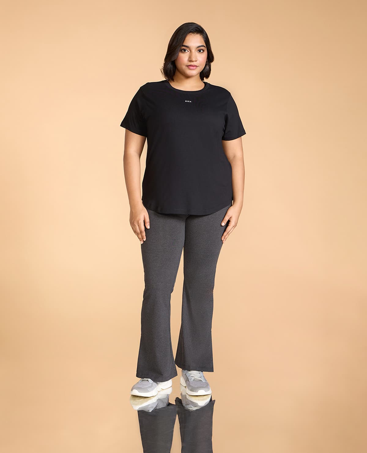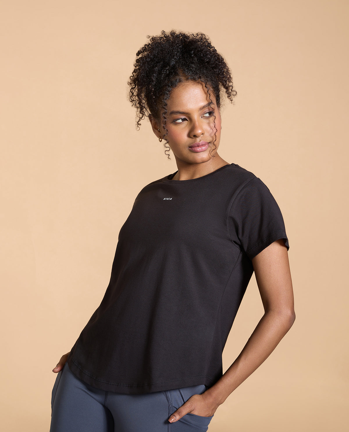 A definite must-have, this basic cotton top is soft and breathable. With a relaxed fit, half sleeves, and a curved hem, it suits all body types and goes well with our Straight Pants and Cotton Leggings.