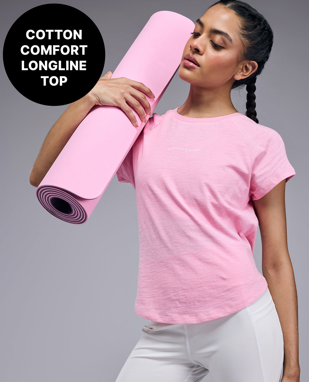 Cotton Longline Top With Adjustable Tie-Back - KIC005 Pink