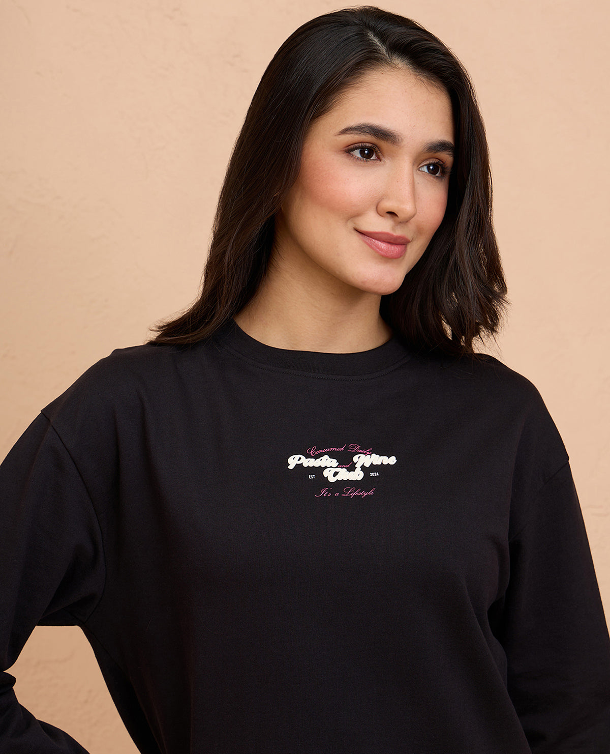 Cozy Cotton Sweatshirt in Terry NYLE703-Black