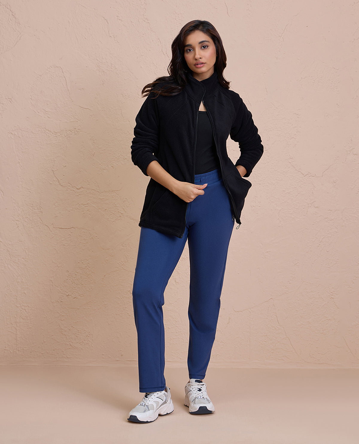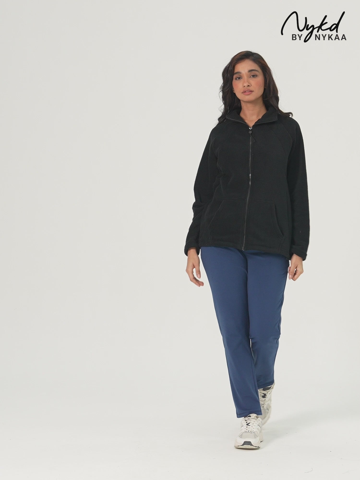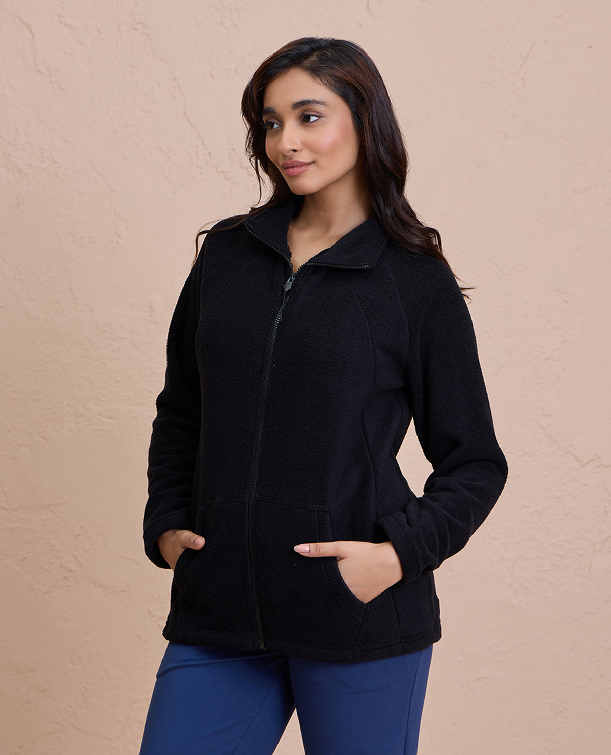 Cozy Sherpa Jacket with Zippered Front-NYLE701-Black