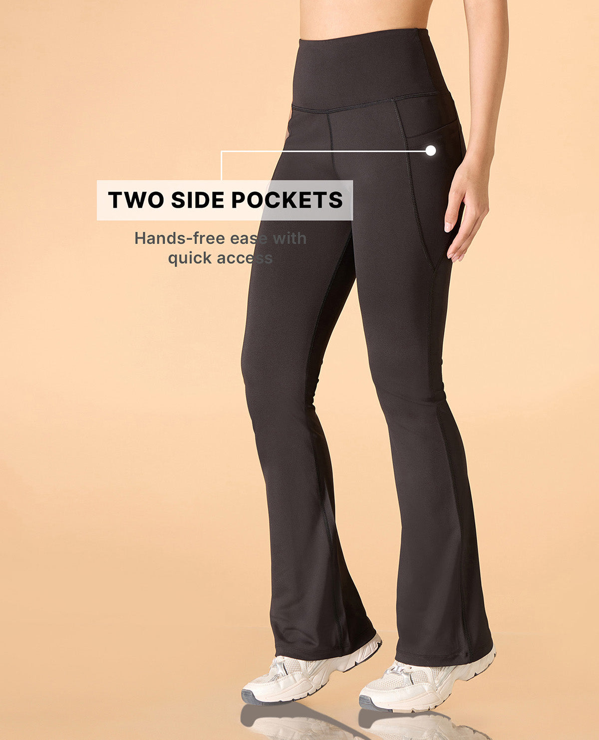 A: We prioritize the perfect fit in our Flare Pants. Crafted with a combination of stretch and shape retention, these pants offer a flattering silhouette and flexibility to move with ease during your activities.