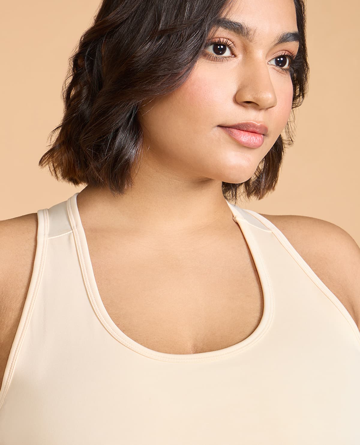This mid-impact Second SKN Sports Bra is an absolute must-have for your workout needs. The fabric is smooth, soft, and stretchable. Full coverage and bounce control, this sports bra is perfect for gym & training, dance, and yoga.