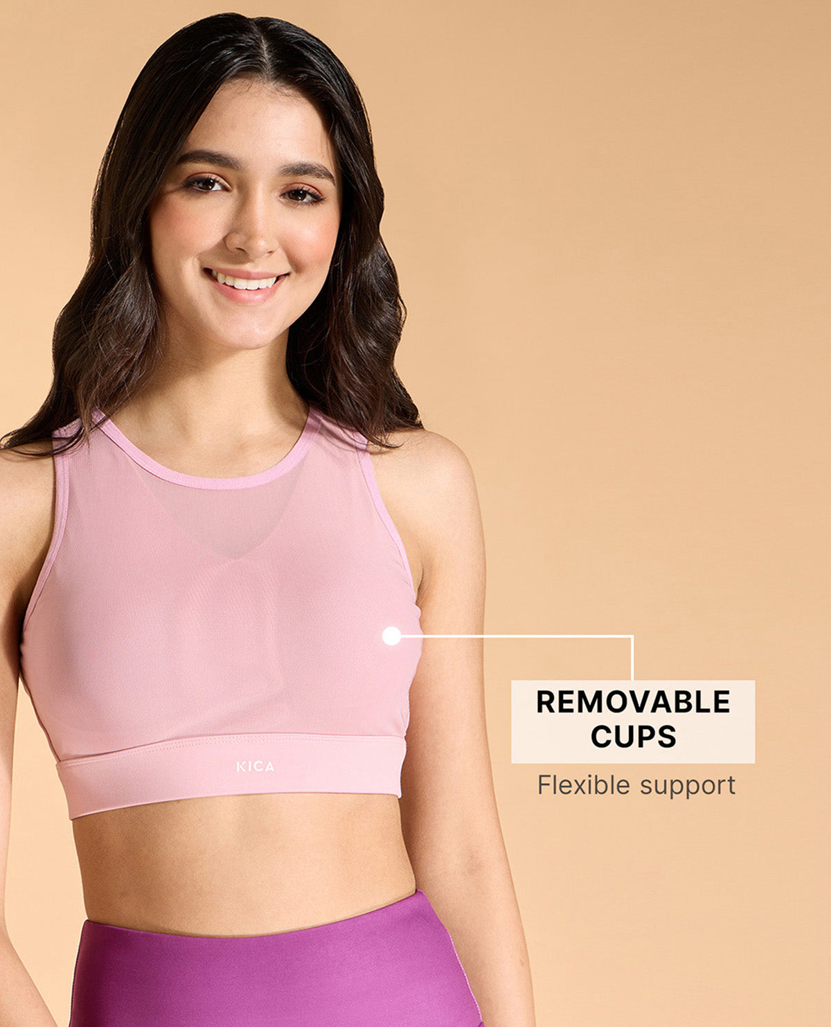 "The Mesh Sports Bra is your go-to high-impact sports bra for women that doesn’t compromise on style or comfort. Crafted in our cult-favourite Second SKN fabric, this lightweight, breathable, gym sports bra for women is stretchable, quick-drying, and keeps you sweat-free and confident from start to finish. Why you’ll love it: * Maximum support: Perfect for gym sessions, running, dance, or yoga flows, keeps you secure in every move, making it one of the best sports bras for women. * Custom comfort: Adjustable straps let you find your perfect fit for padded or non-padded sports bra needs. * Stay-dry tech: Mesh back ensures breathability and keeps you cool even during the sweatiest workouts. * Edgy style: V-neck design adds a chic, sporty edge, perfect as a stylish sports bra for women. * Versatile wear: Removable cups let you wear it your way, gym-ready or styled as a crop top bra for women. Made in our signature Second SKN blend (88% Polyester, 12% Spandex) with breathable Nylon-Spandex mesh (92% Nylon, 8% Spandex), the Mesh Sports Bra delivers a snug-yet-stretchy fit that works as hard as you do. From high-intensity sessions to weekend street style, the Mesh Sports Bra is your versatile, all-day-anywhere essential, ideal for women’s workouts and gym sessions."