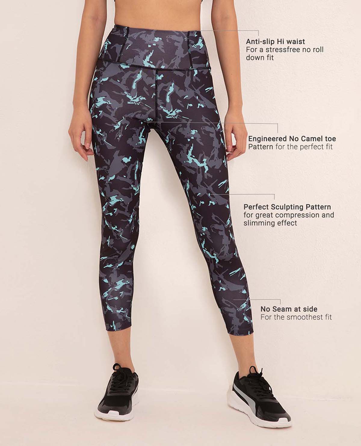 Details: Wear-tested by for the perfect fit in trendy prints and high waisted with a firm grip concealed elastic. Anti- camel toe leggings that won't ride down