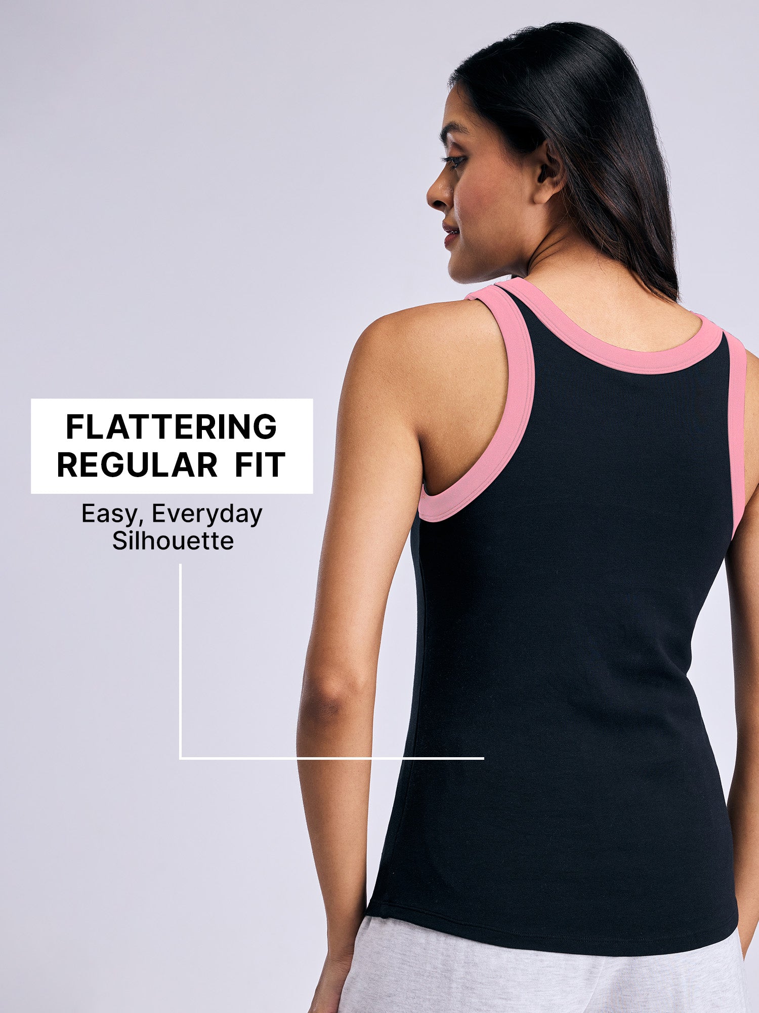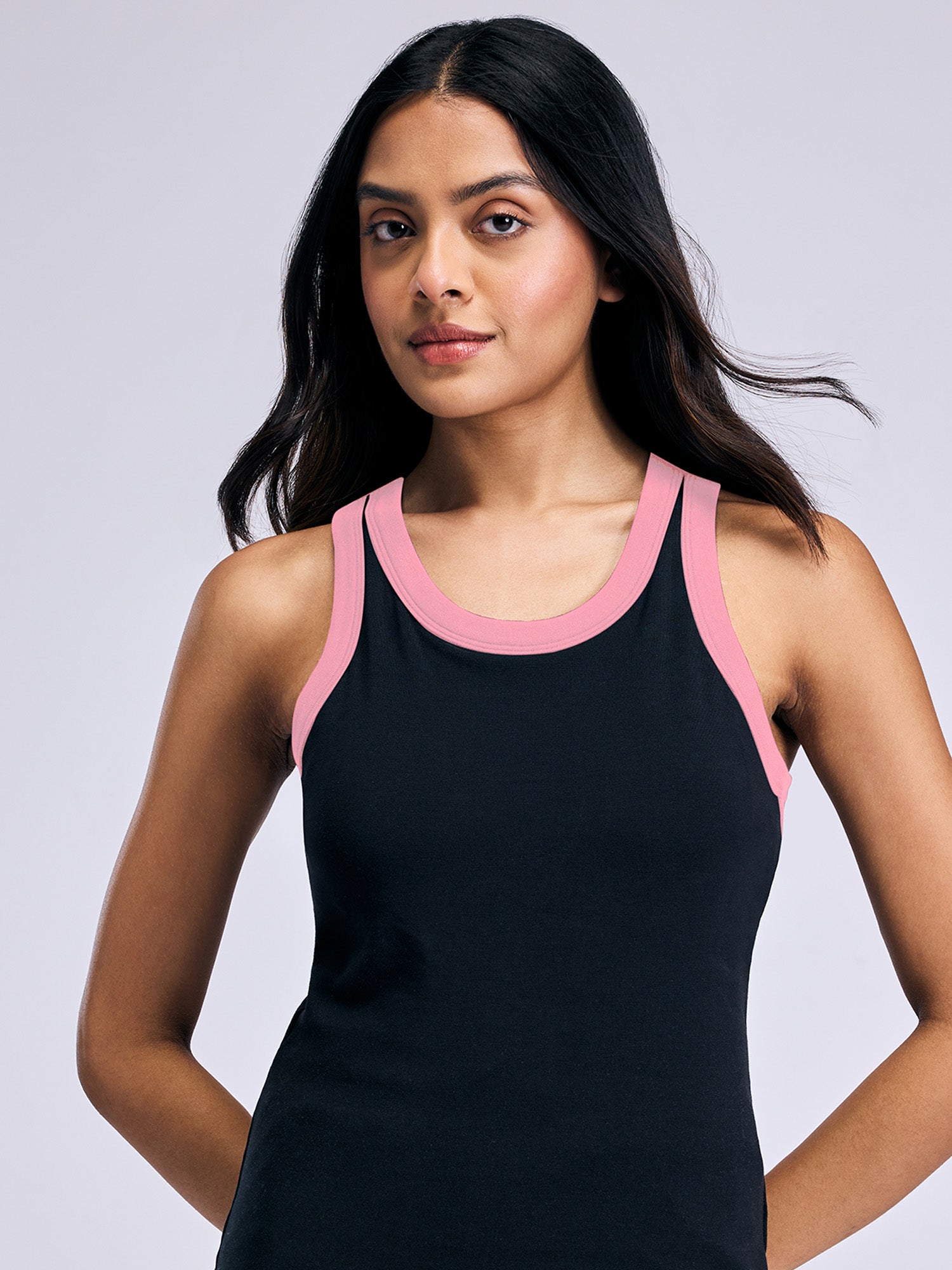 The built-in stitched cups provide natural shaping and support, eliminating the need for an extra bra. With a clean neckline, flattering fit, and smooth finish, this tank delivers a fuss-free, all-in-one solution that’s perfect from studio sessions to daily styling.