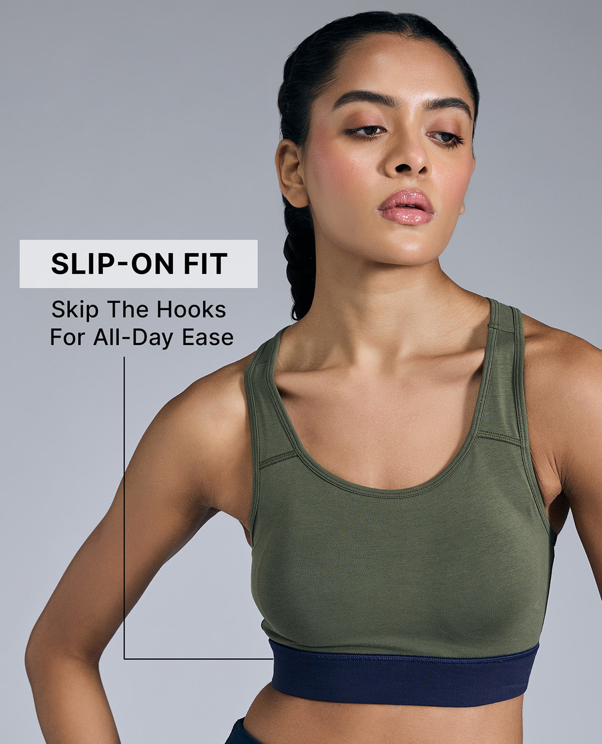 Home| Kica Breathe Easy Cotton Slip-On Sports Bra Olive