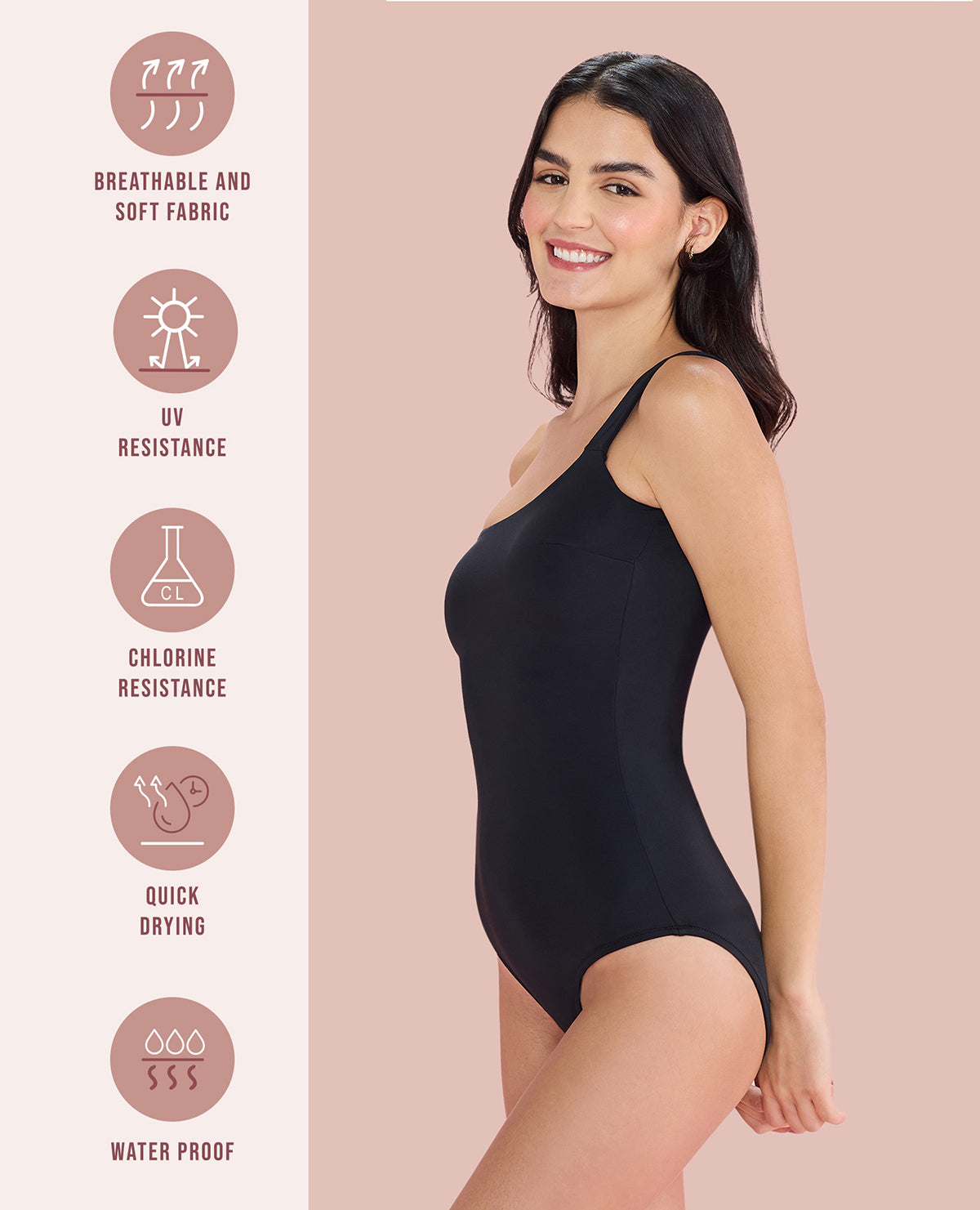 Upgrade your beach look with our stylish & chic one-shoulder swimsuit! It's made from premium polyamide fabric that feels soft and lasts long, protecting you from UV rays and chlorine. You can customize the fit with removable cups and unique crochet detailing on the side. Plus, enjoy extra coverage in the back and added support with optional transparent straps. Whether you're hitting a pool party or a beach day, this swimsuit combines fashion and practicality perfectly.