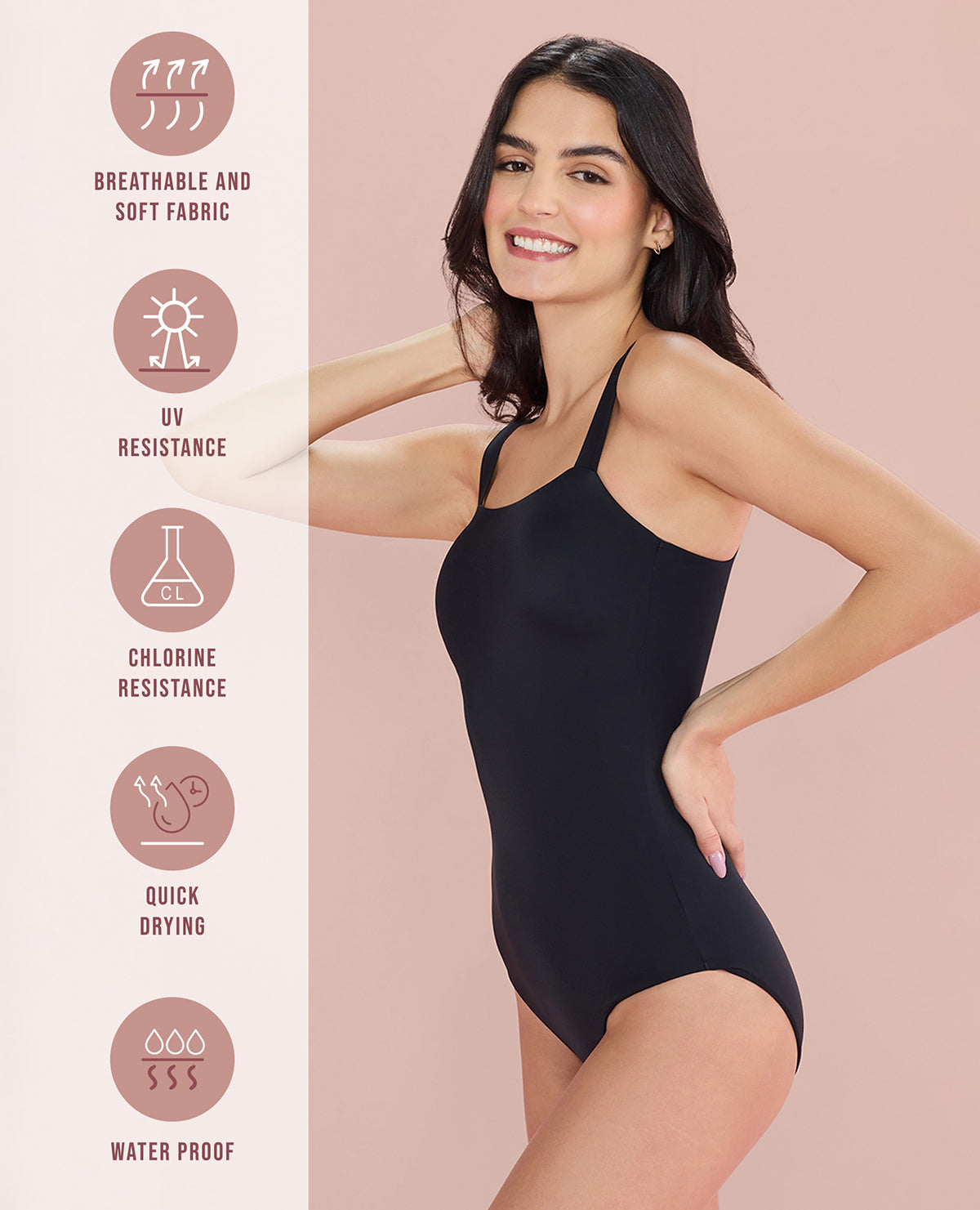 Introducing our Square Neck Swimsuit, designed to bring elegance to your swimwear collection without compromising on comfort or durability. Crafted from luxurious polyamide fabric, it feels soft against your skin while providing protection against UV rays and chlorine damage, so you can enjoy it for a long time. The removable cups offer versatility, and the feminine square neckline paired with broad elasticated straps and excellent rear back coverage ensure a comfortable and supportive fit. Whether you're lounging by the pool, hitting the beach, or taking a dip in the ocean, this swimsuit offers great coverage and style for any adventure.