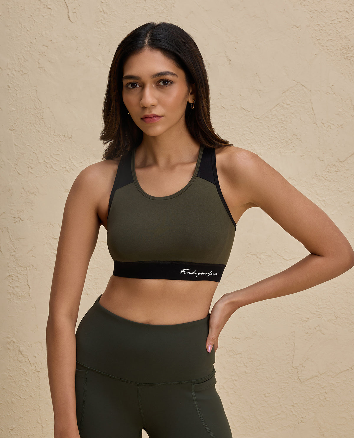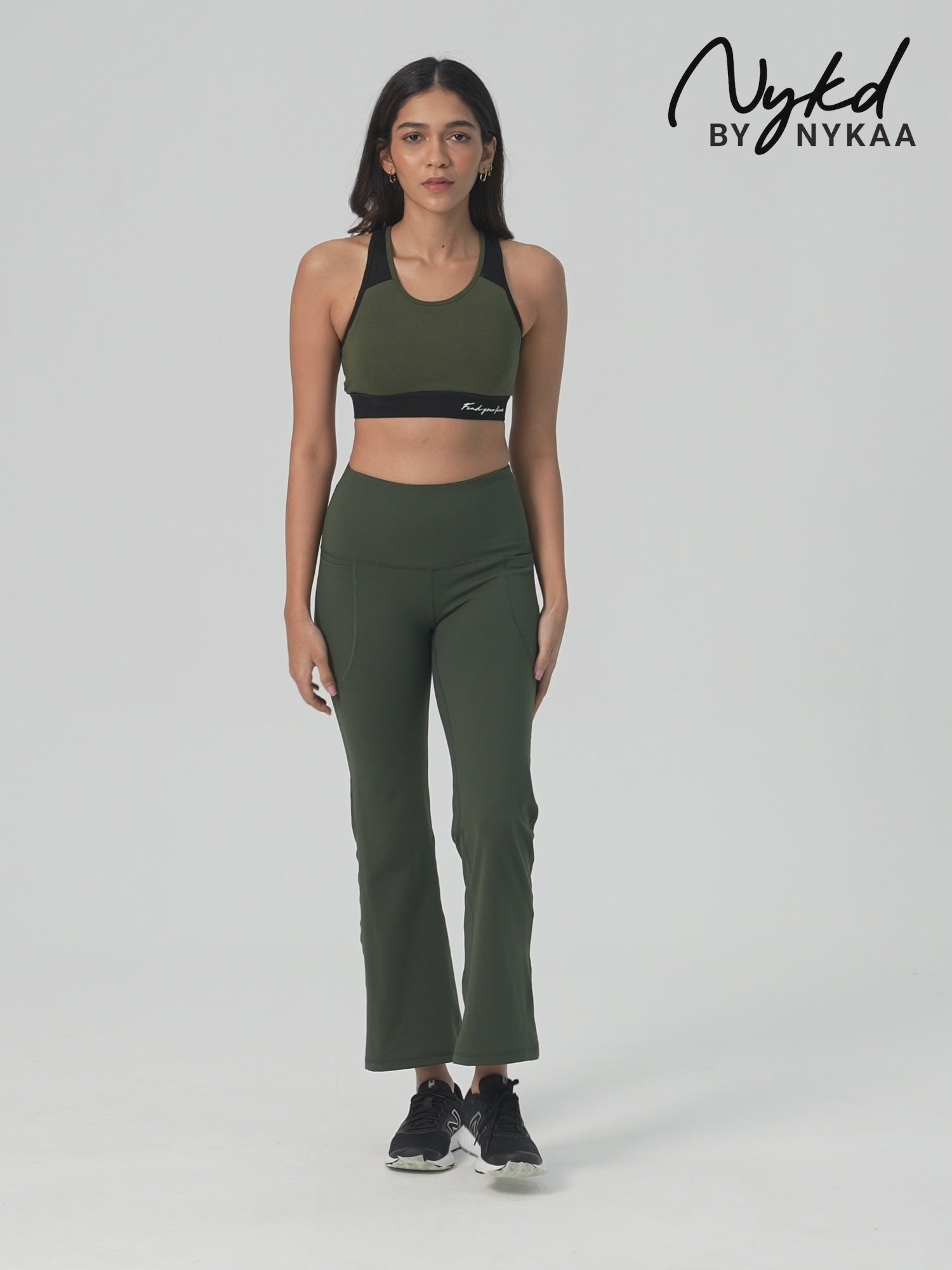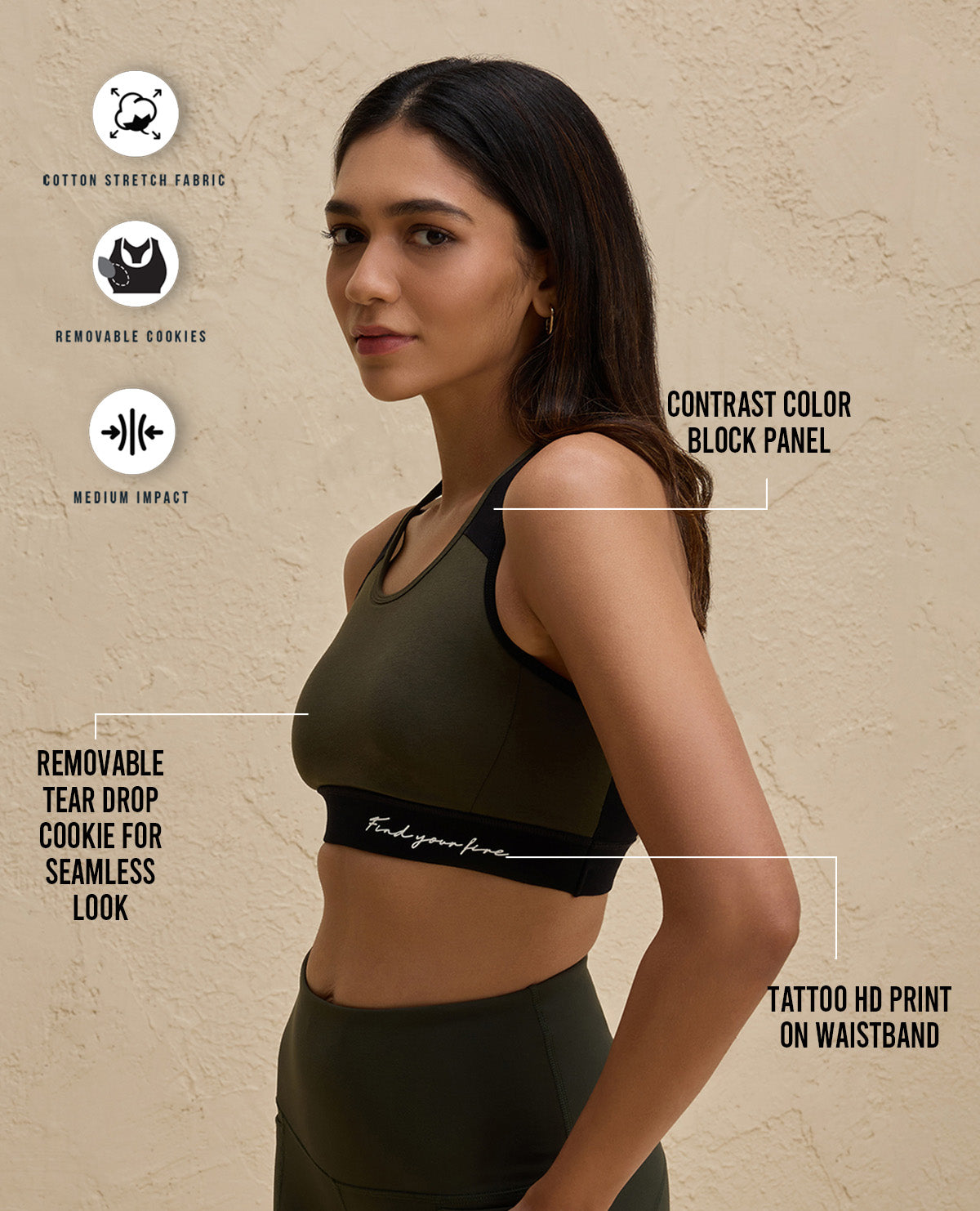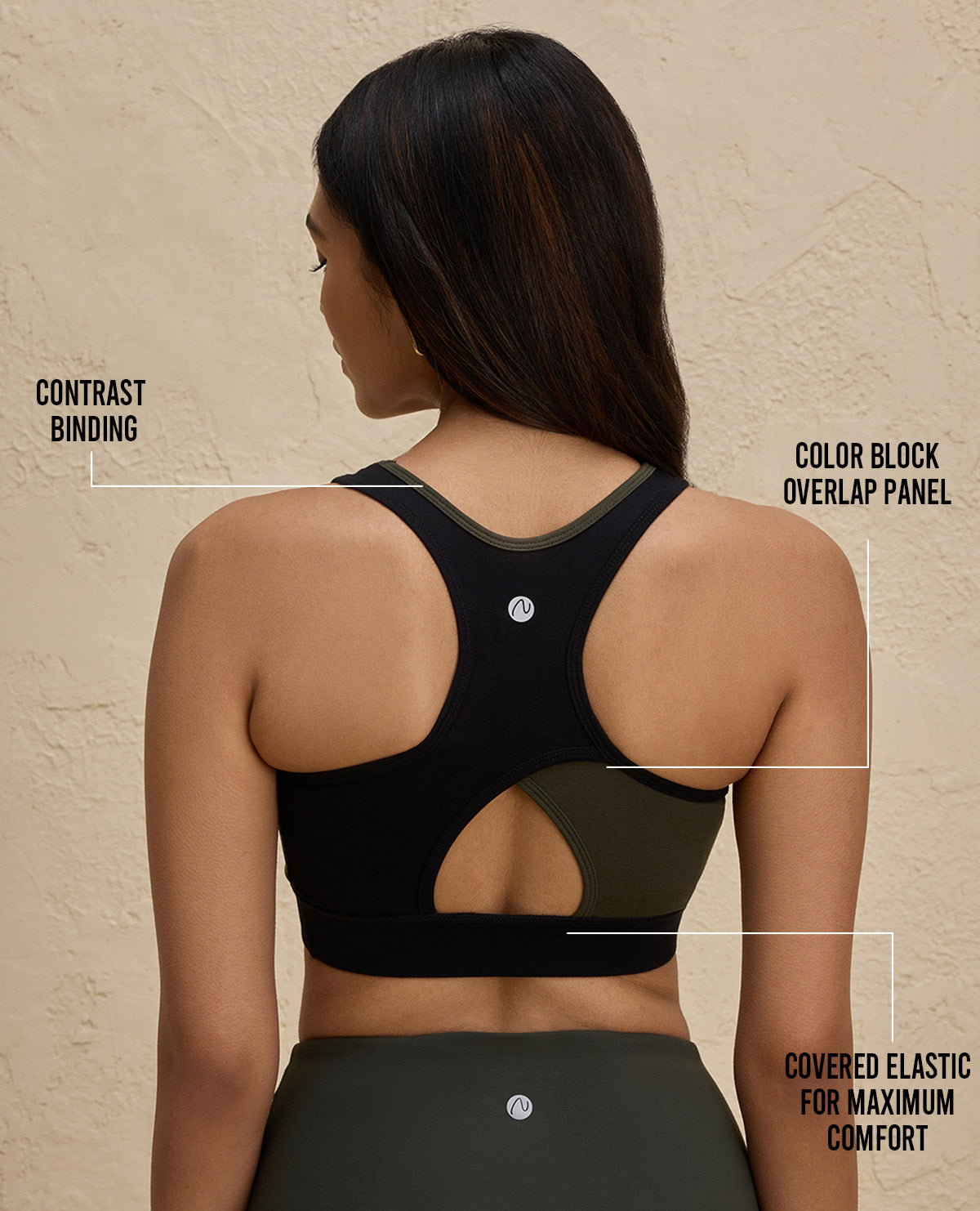 Nykd By Nykaa Essential Breathable Cotton Slip On Color Block Sports Bra -NYK904-Olive