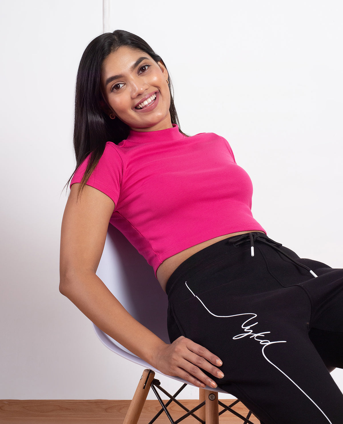 Nykd by Nykaa High Neck Crop Top- NYOE07 Fuchsia Rose