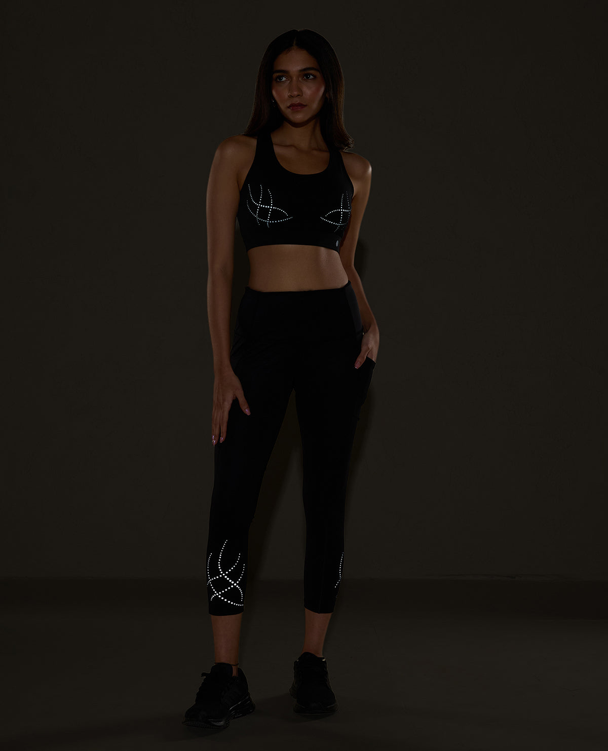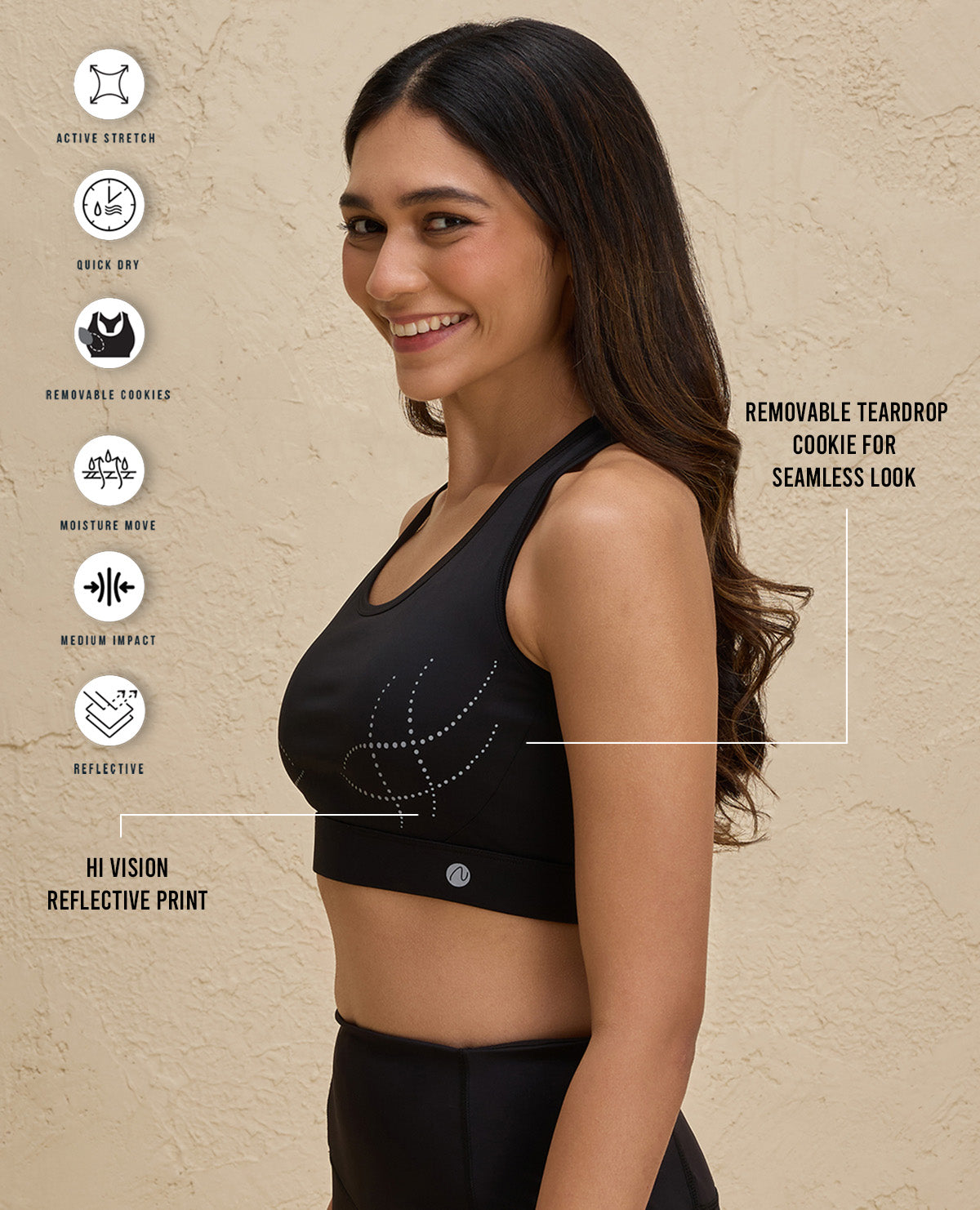 Nykd By Nykaa Reflective Print Sports Bra-NYK298-Jet Black