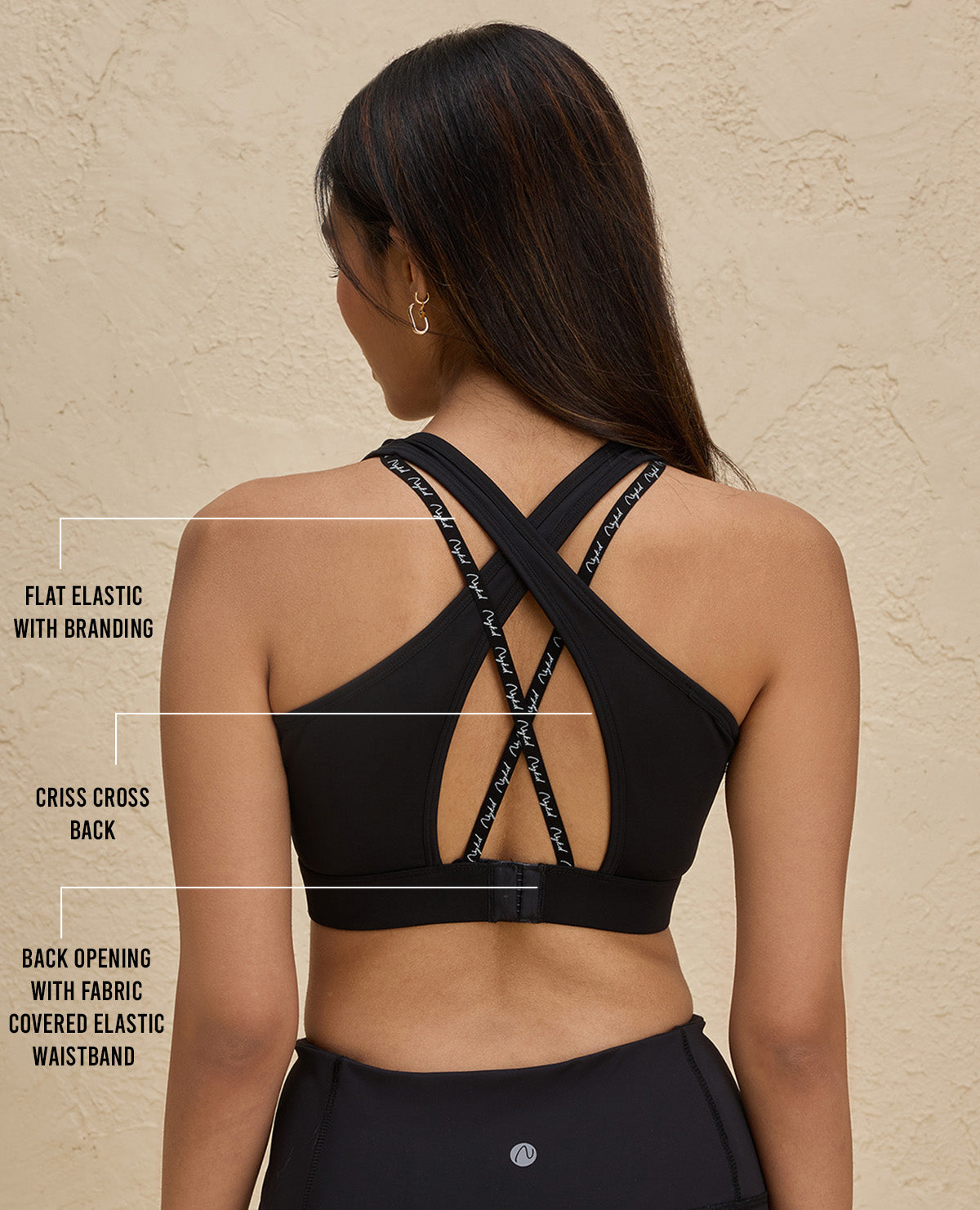 with this stylish sports bra. It has a trendy criss-cross back design, removable teardrop