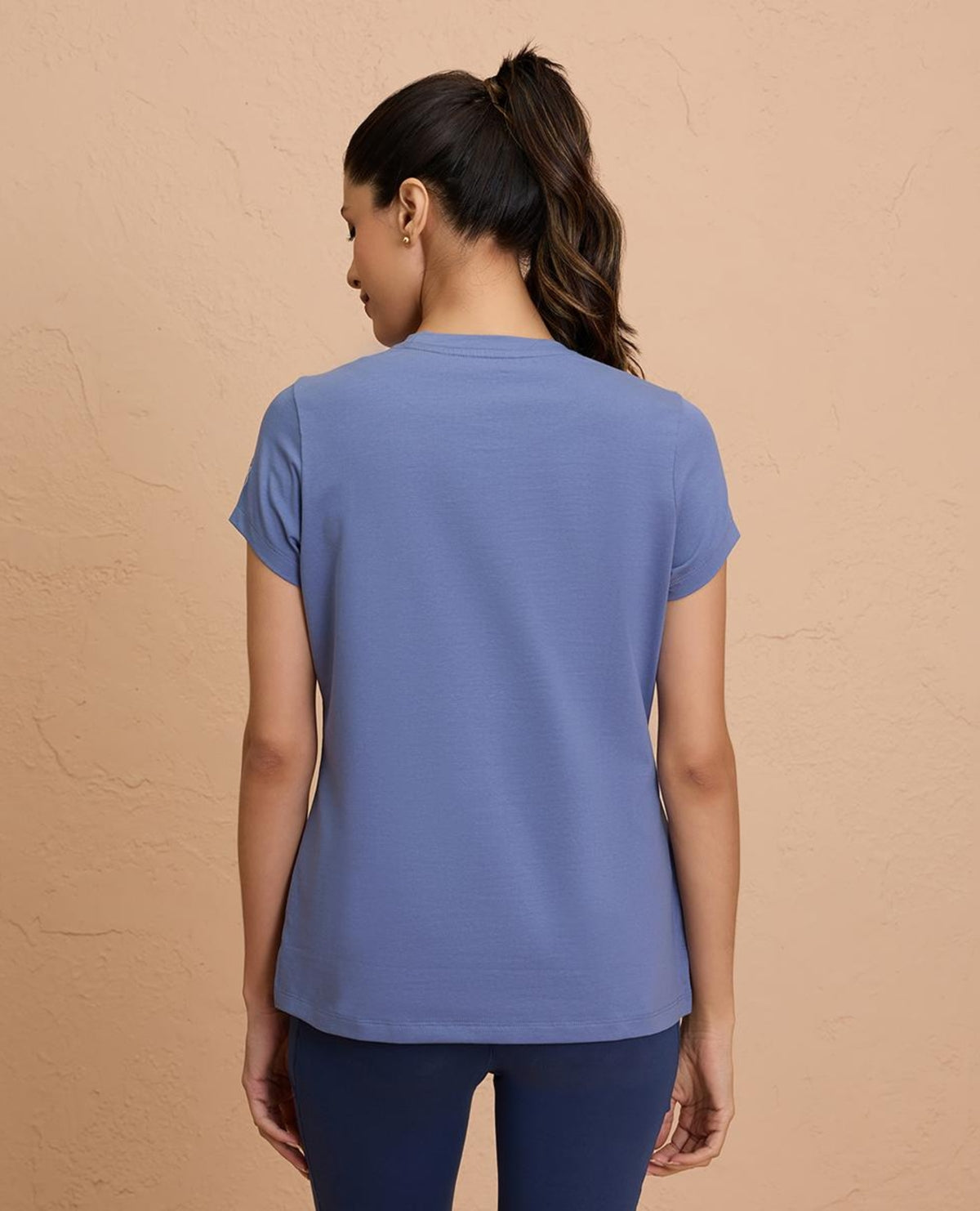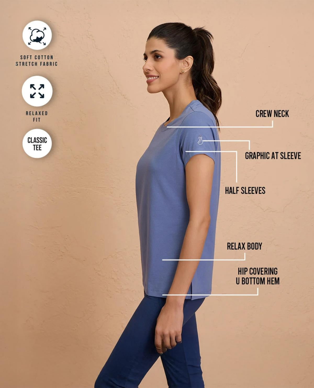 An absolute wardrobe essential, this versatile cotton crew neck tee tops all your wardrobe basics. Pair it with jeans, joggers, or culottes for any occasion. The sleeve heart print reminds you that self-love comes first.
