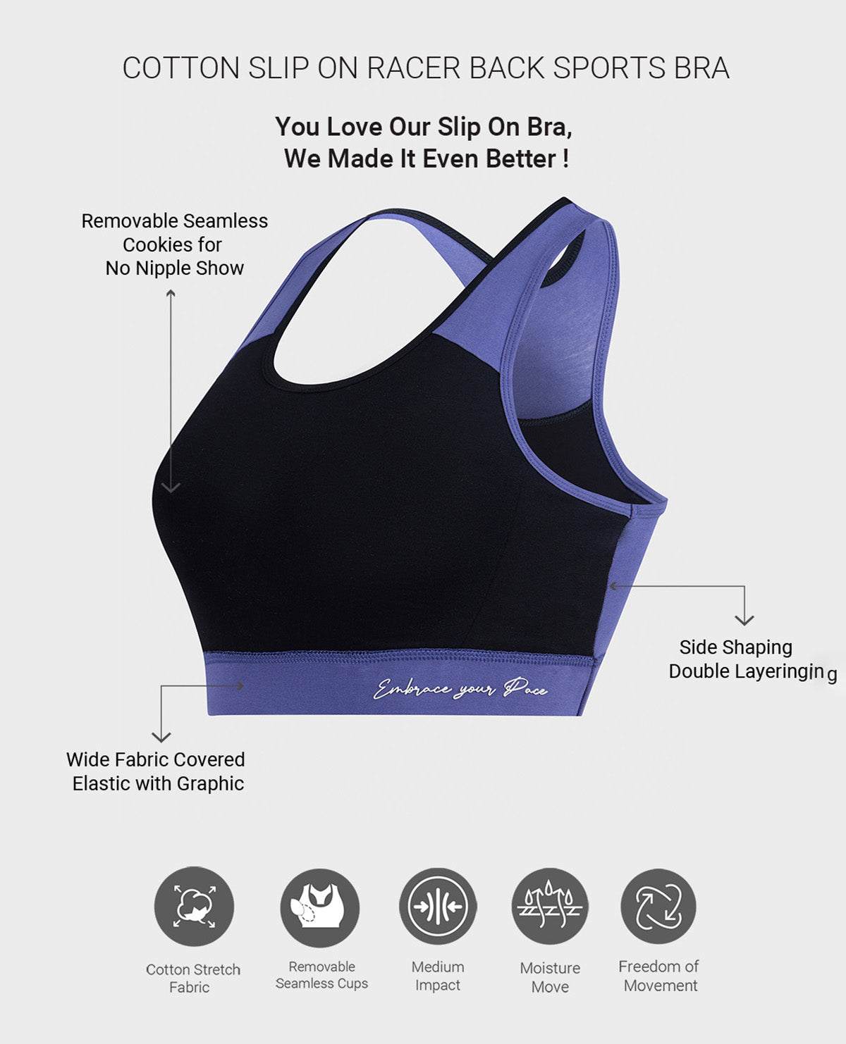 favourite for breathability and versatility. Engineered for comfort, coverage and support with