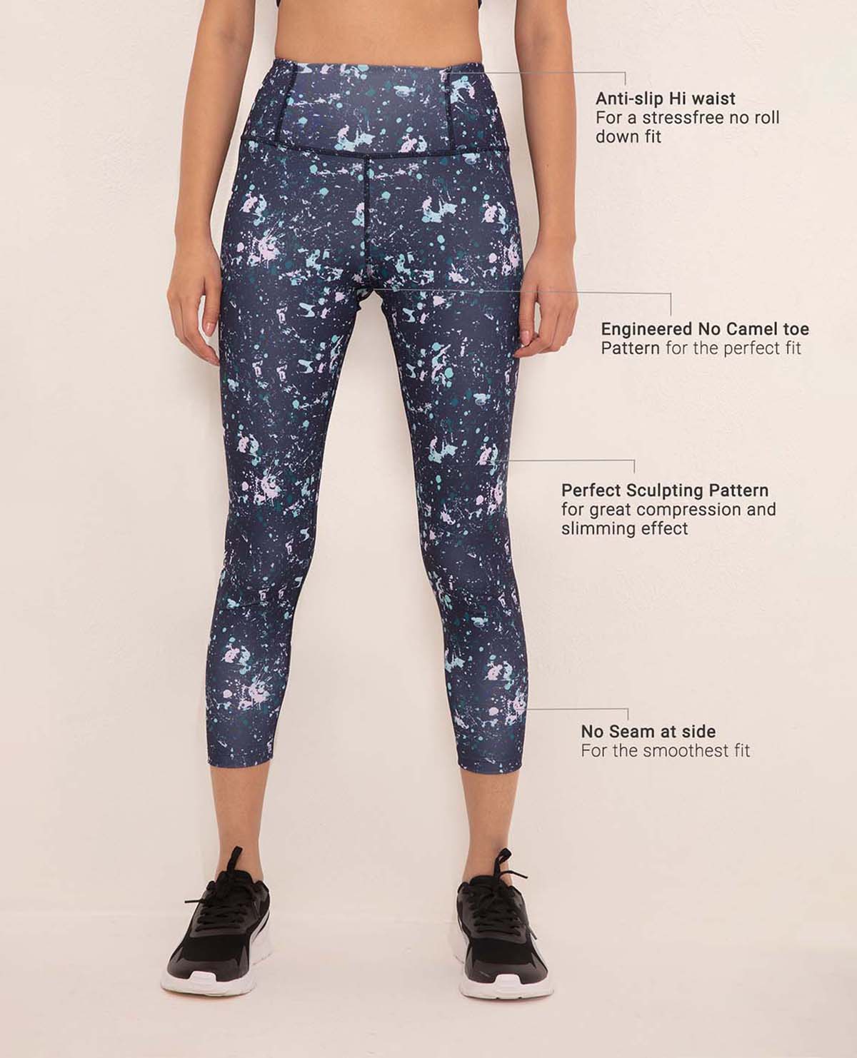 Details: Wear-tested by for the perfect fit in trendy prints and high waisted with a firm grip concealed elastic. Anti- camel toe leggings that won't ride down