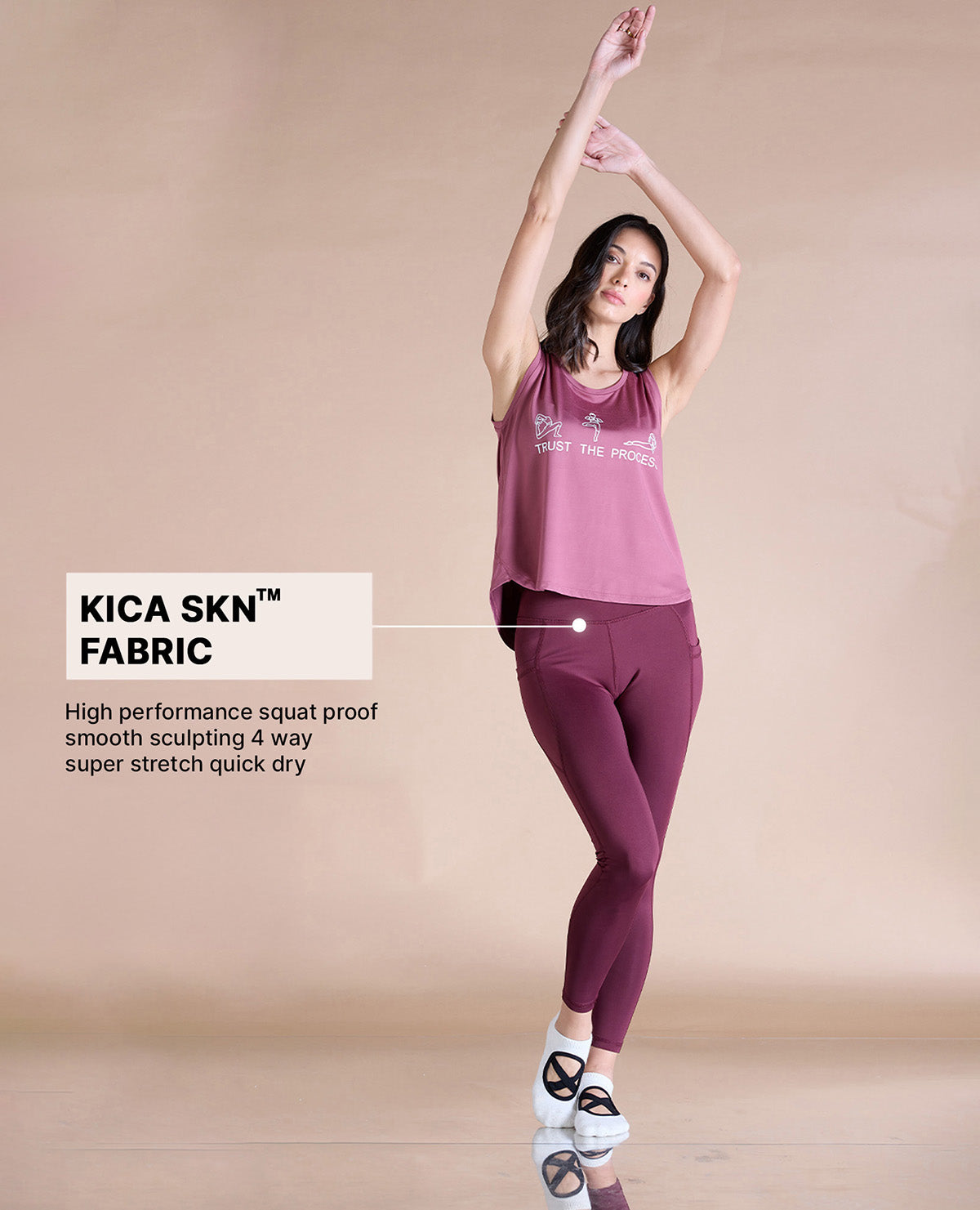 A: Our activewear leggings are available in two fabric options. For cotton leggings, the blend of premium-quality fabrics provides a soft and comfortable feel. If you prefer buttery-soft, moisture-wicking and quick-drying properties, our polyester SKN leggings are an excellent choice.