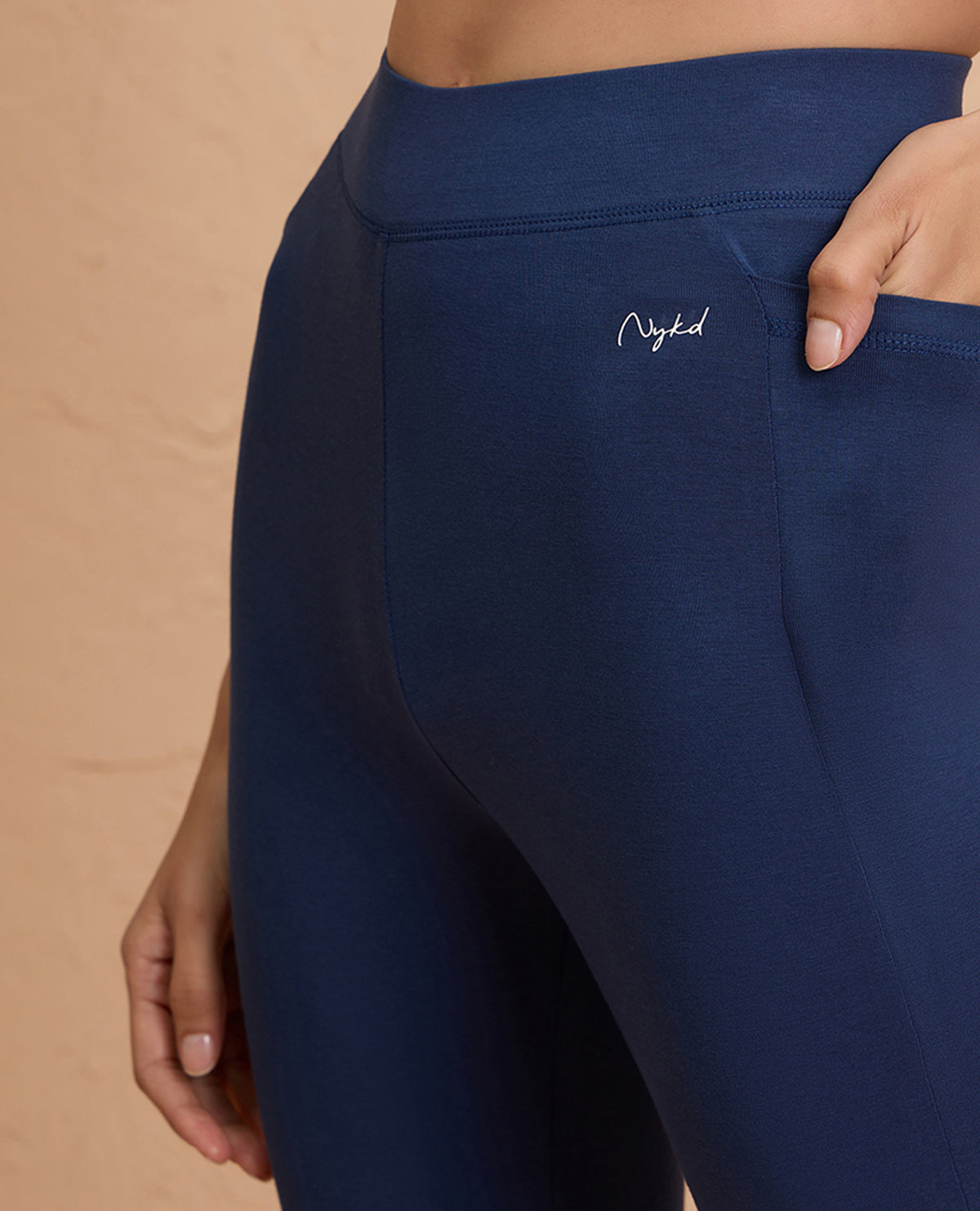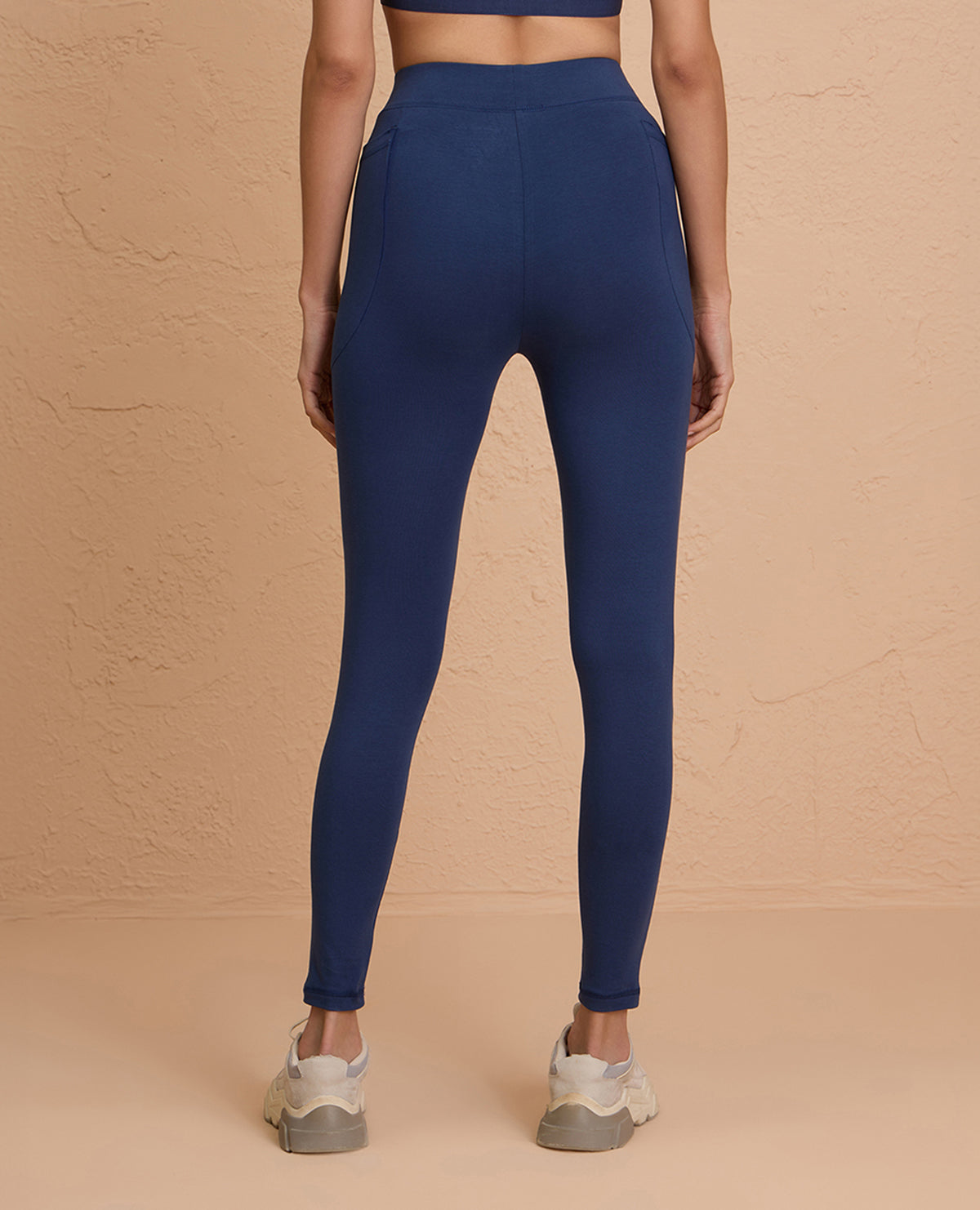 Ultimate Comfort Cotton Leggings with Pockets & Anti Knee Bulge Super Stretch fabric NYAT401U Blue